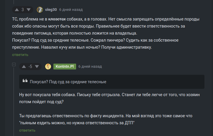 В общем мне будет насрать какое наказание будет ПОСЛЕ инцидента. Я хочу чтобы небыло риска того, что какое нибудь агрессивное животное сорвалось и загрызла меня или моего ребенка.