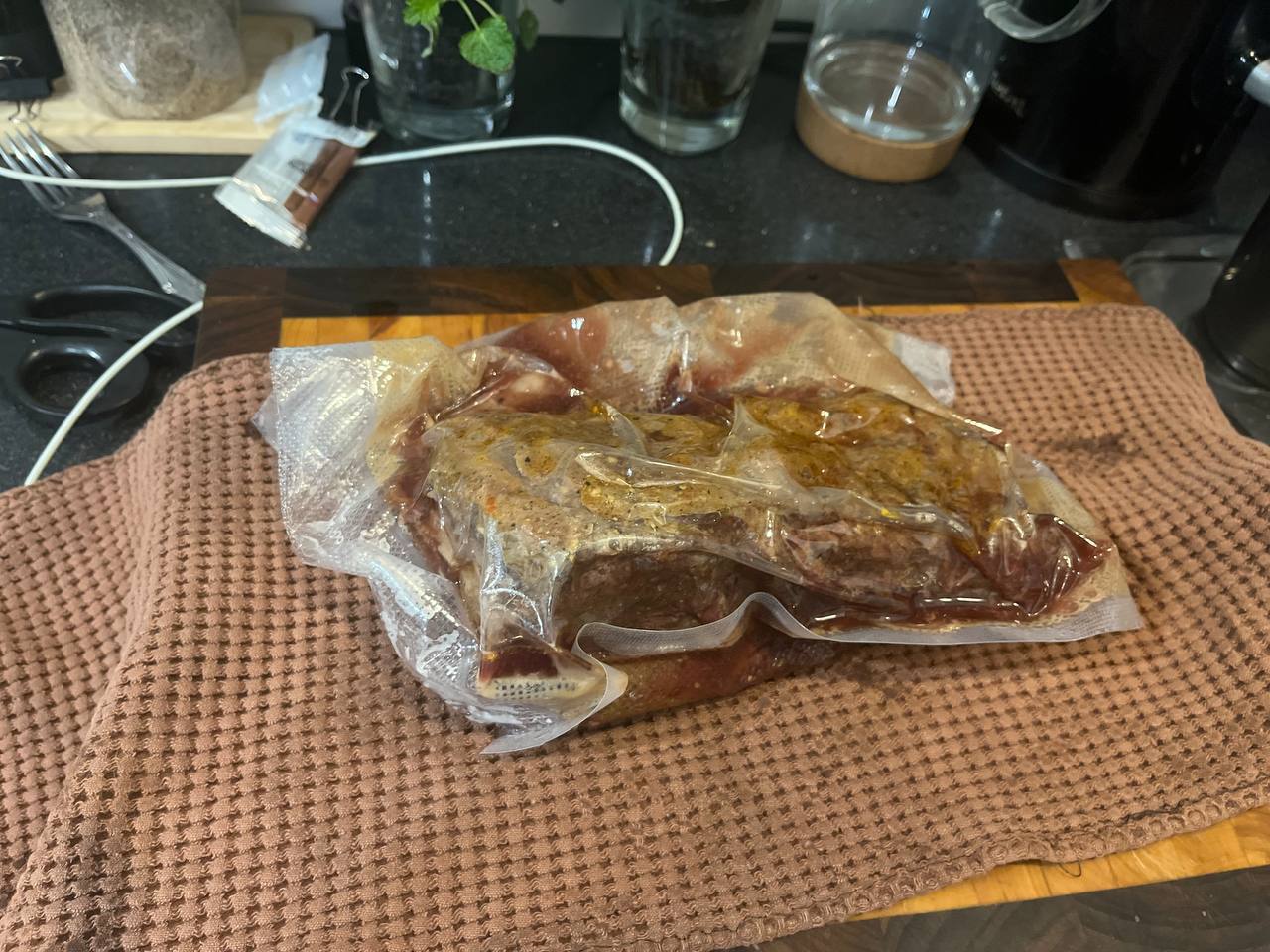 Так! Тут в одной из веток было обсуждение, можно ли просто завакуумировать мясо и сунуть в духовку. Проверила — рассказываю: вашему вниманию псевдо-брискет в псевдо-сувиде.