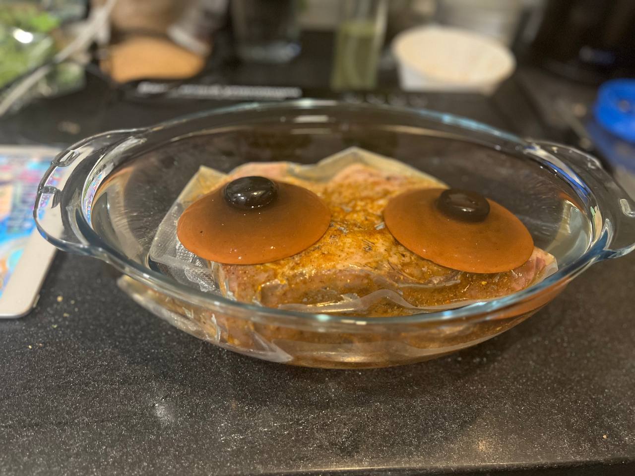 Дисклеймер: проверяйте маркировку пакетов для вакуумирования — не все из них переносят нагрев. Мои (по заявлениям производителя) можно нагревать до 100-110 и использовать для сувида.