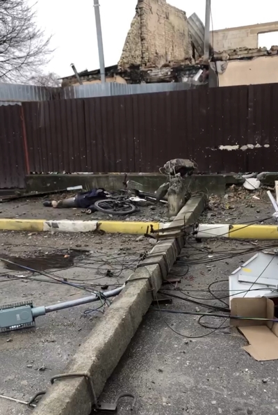 на месте происшествия нет столбов, (провода видны. Дом совершенно другой, и белый.