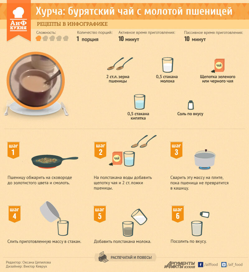 А это такой чай, который с молоком жирный и соленой, который варится по специальному рецепту. Я не стал ему говорить, что у нас нет такого чая, потому что мы же монгольский ресторан и у нас должен быть монгольский чай.