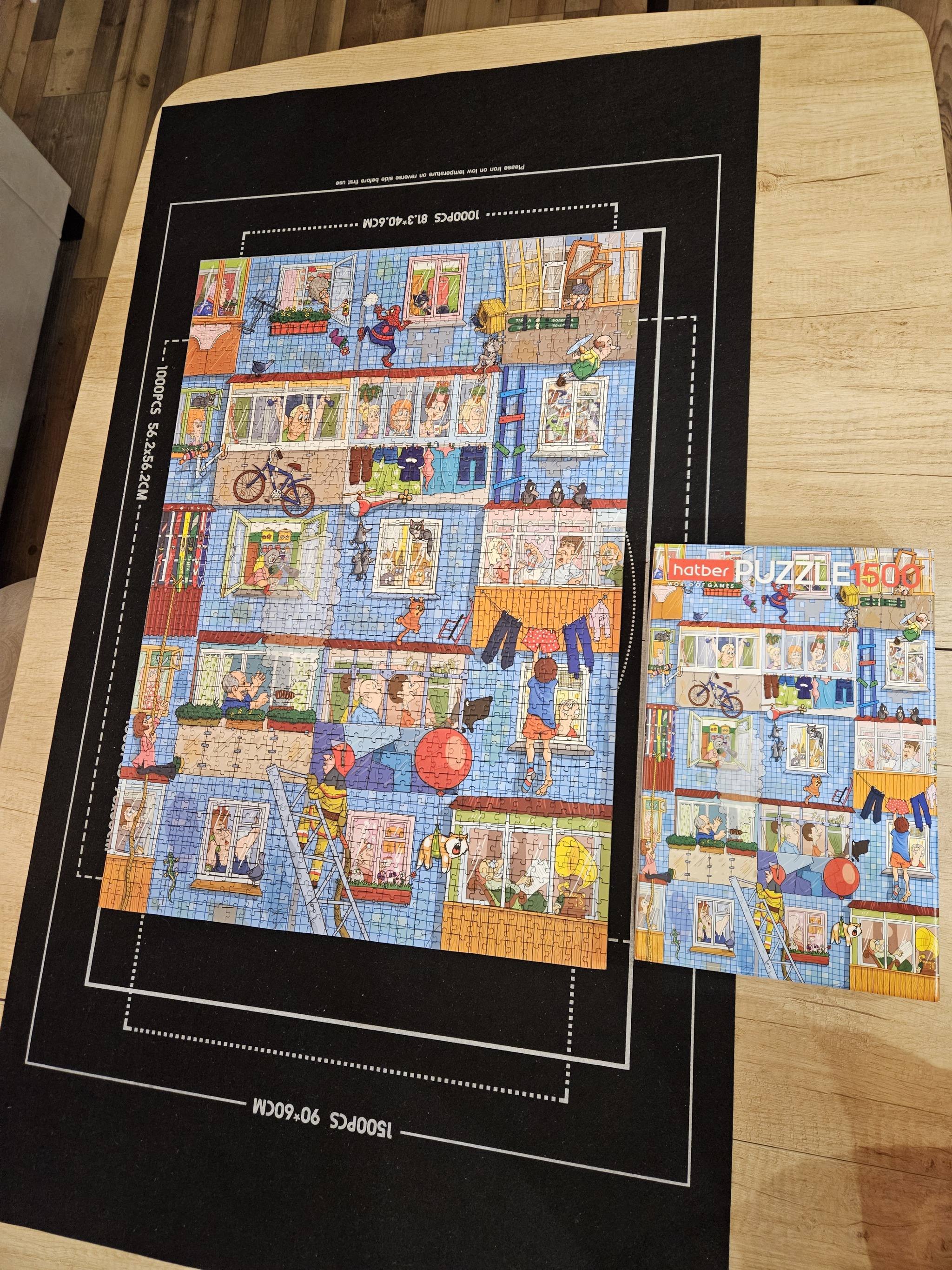 Всем привет. Поделюсь маленьким достижением. Вчера с супругой покорили рубеж в 1500 элементов, до этого собирали только 500, в планах было купить и собрать 1000, и постепенно увеличивать размер, но уж очень сильно захотелось собрать именно этот пазл "человейник". Есть в нем какая-то душа, что ли. Именно этот рисунок и пробудил это увлечение, так как после просмотра оригинального поста, пазл был приобретен.