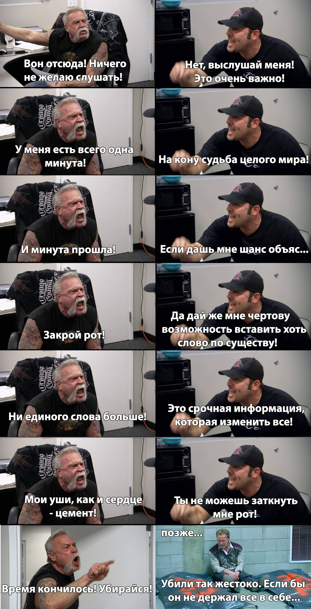 Бесит, когда не могут донести сверхважную информацию друг до друга по дурацким надуманным причинам. И герой вместо того, что крикнуть: ВАШ ПЛАН НЕ СРАБОТАЕТ, ПОТОМУ ЧТО В ПРОБИРКЕ НЕ ТОТ ВИРУС, КОТОРОГО БОЯТСЯ ЗОМБИ, начинает упрашивать выслушать его, тянет резину хронометража, а потом его убивают или еще что-то.