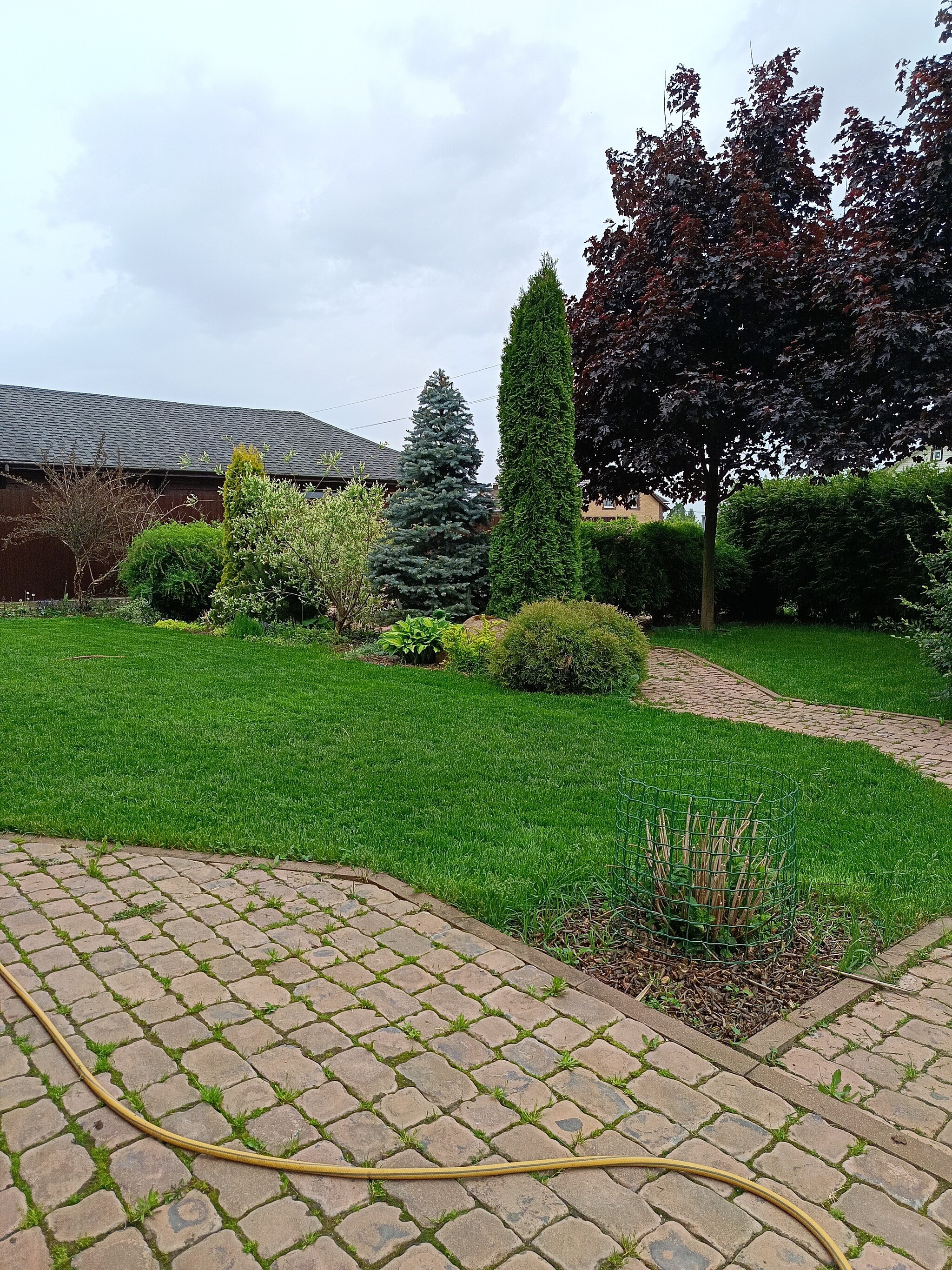 Соседей нет, наш участок был крайним, за забором ручей глубиной сантиметра 3, в котором часто утки с утятами плавали, огибает этот ручей наверное всю деревню, за ним холм, весь в цветущей дикой землянике и кротовьих норах (красота неописуемая, если честно).