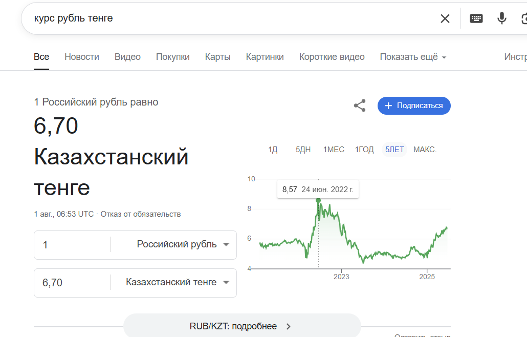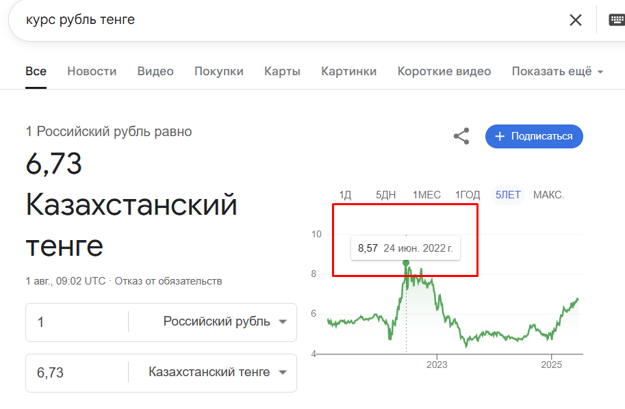 ссылка на курс тенге. смотрите за 5 лет в районе 23 июня 2022 (мой ДР, я был там в то время)
