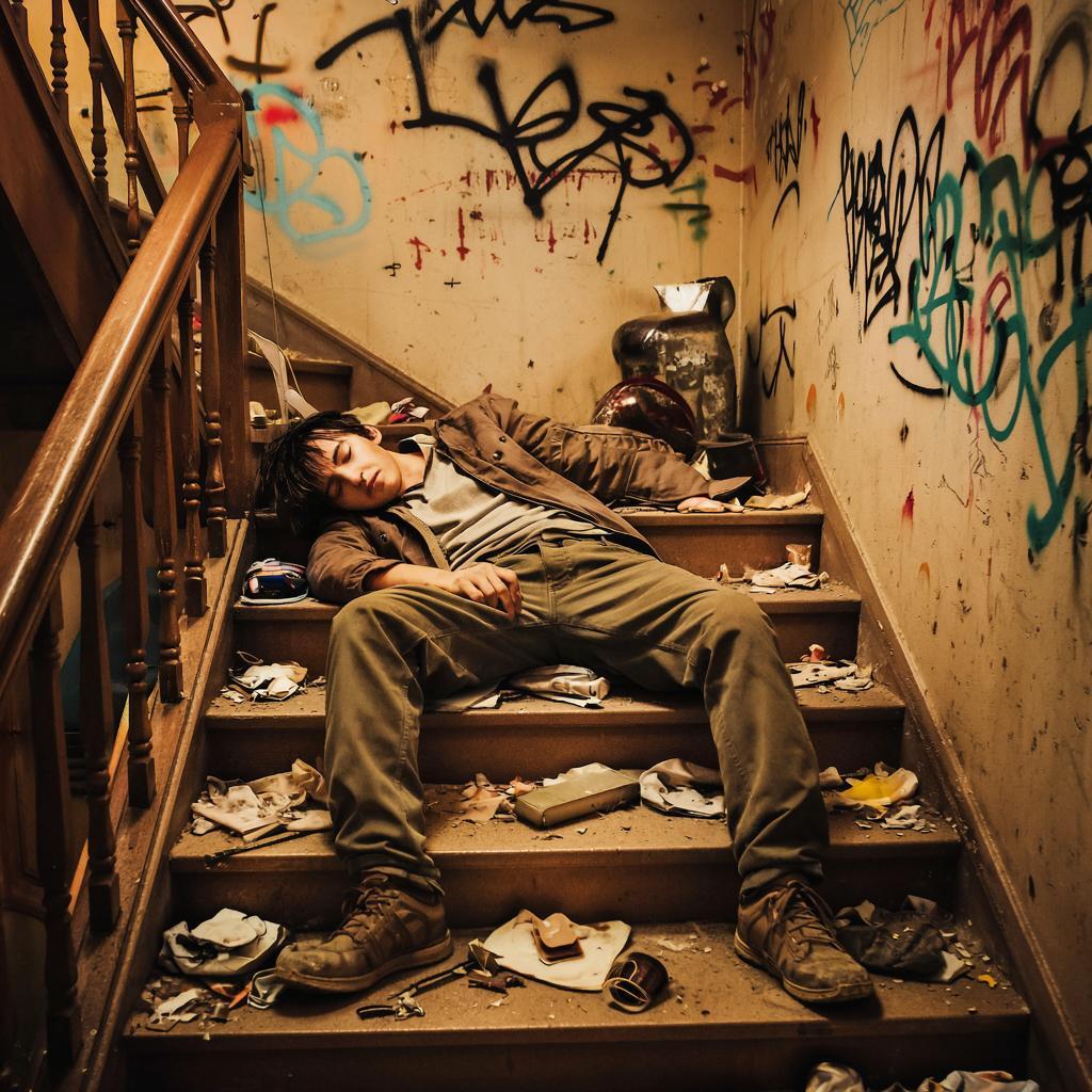Я оборачиваюсь, и вижу что на мне ничего из одежды нет. И что жопа моя не вытерта. И срал я. Так и заснул я на лестничной площадке, без одежды, и с грязной жопой, немного выдавливая подливу в конце.