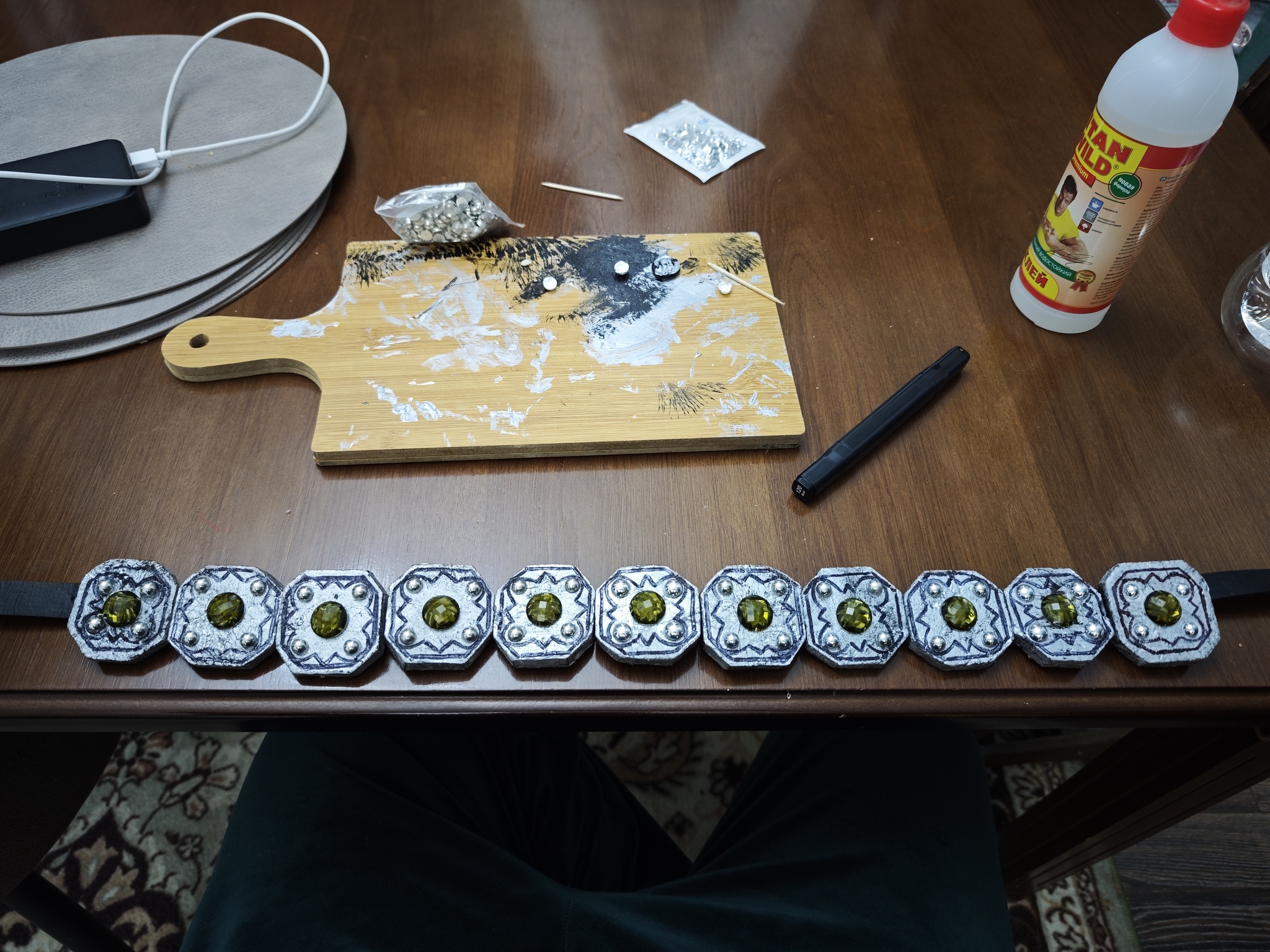 Костюм заказали (портная у меня золото, обожаю), пояс сделала уже я кривыми лапками.