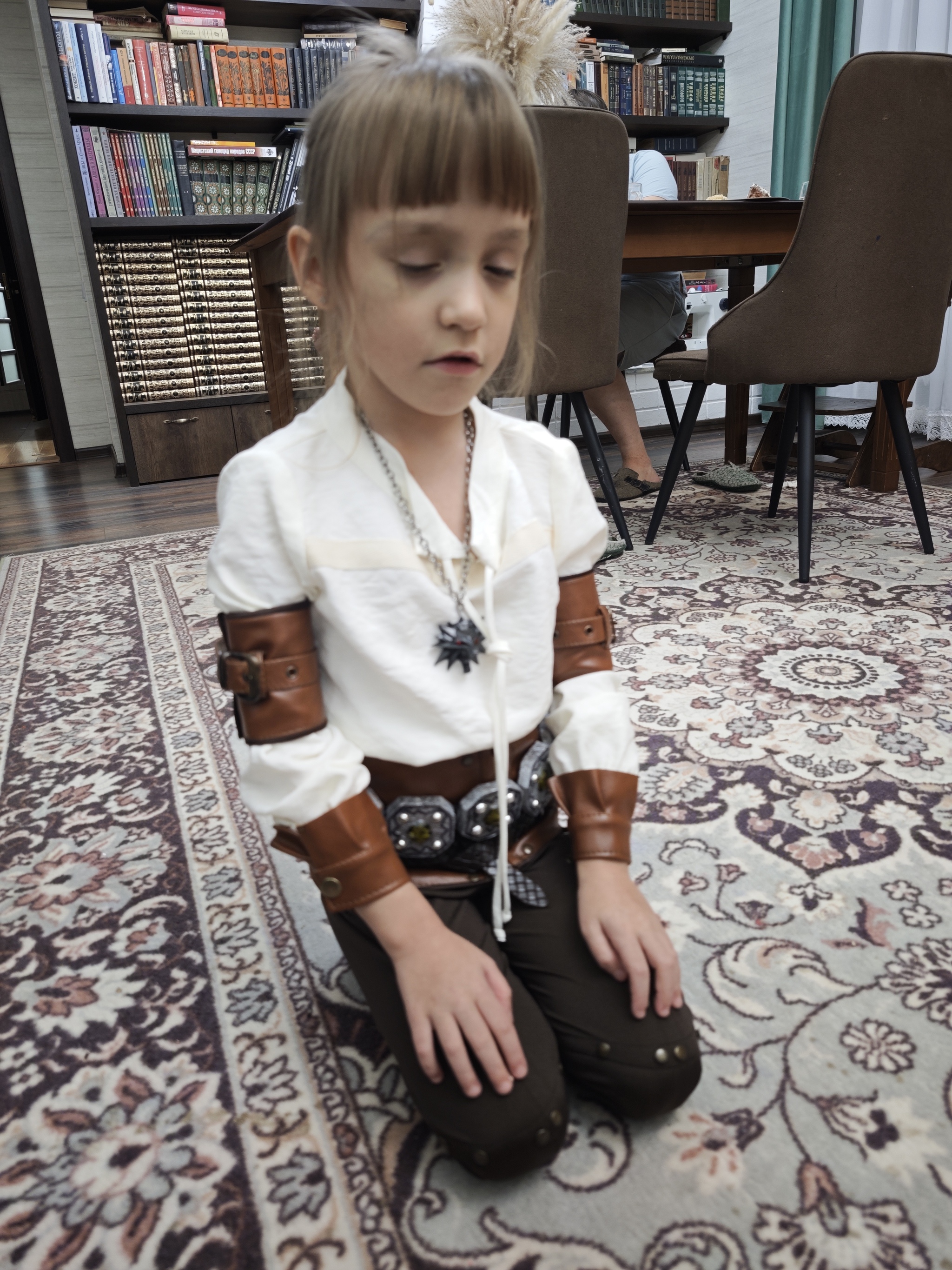 Полгода назад предложила ей стать Геральтом на новогодний утренник, долго выбирали в доспехах какой школы будет. Когда она решила всё-таки быть Цири, ибо девочка, мы с мужем вздохнули с облегчением от радости, что не придется плести кольчугу.