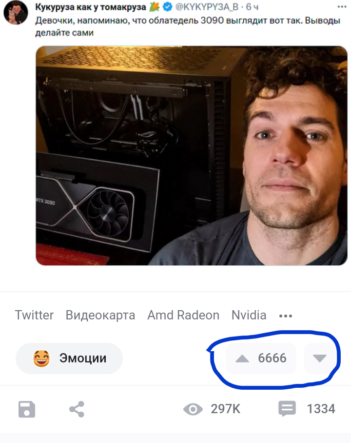 user4944711 Ответ на пост «Диагнозы по видеокарте»1 2 года назад Цифра количества плюсов как раз для названия видеокарты подходит X (Twitter) Видеокарта Amd Radeon Nvidia Длиннопост Twitter (ссылка) Скриншот IT юмор Ответ на пост Ещё 0