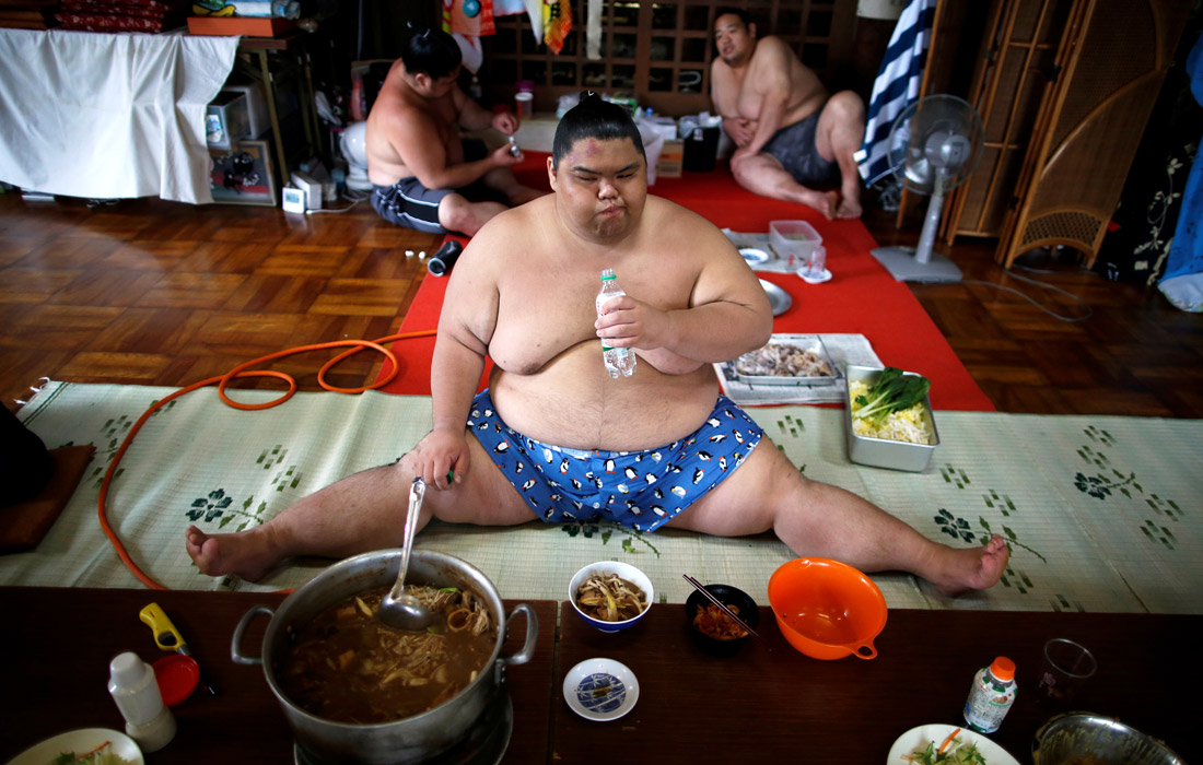 ...эти огромные спортсмены под 300 кг каждый обнаружили, что лучше всего не есть до полудня, а принимать пищу один или максимум два раза в день – причём большими порциями – и сразу же после этого ложиться спать.