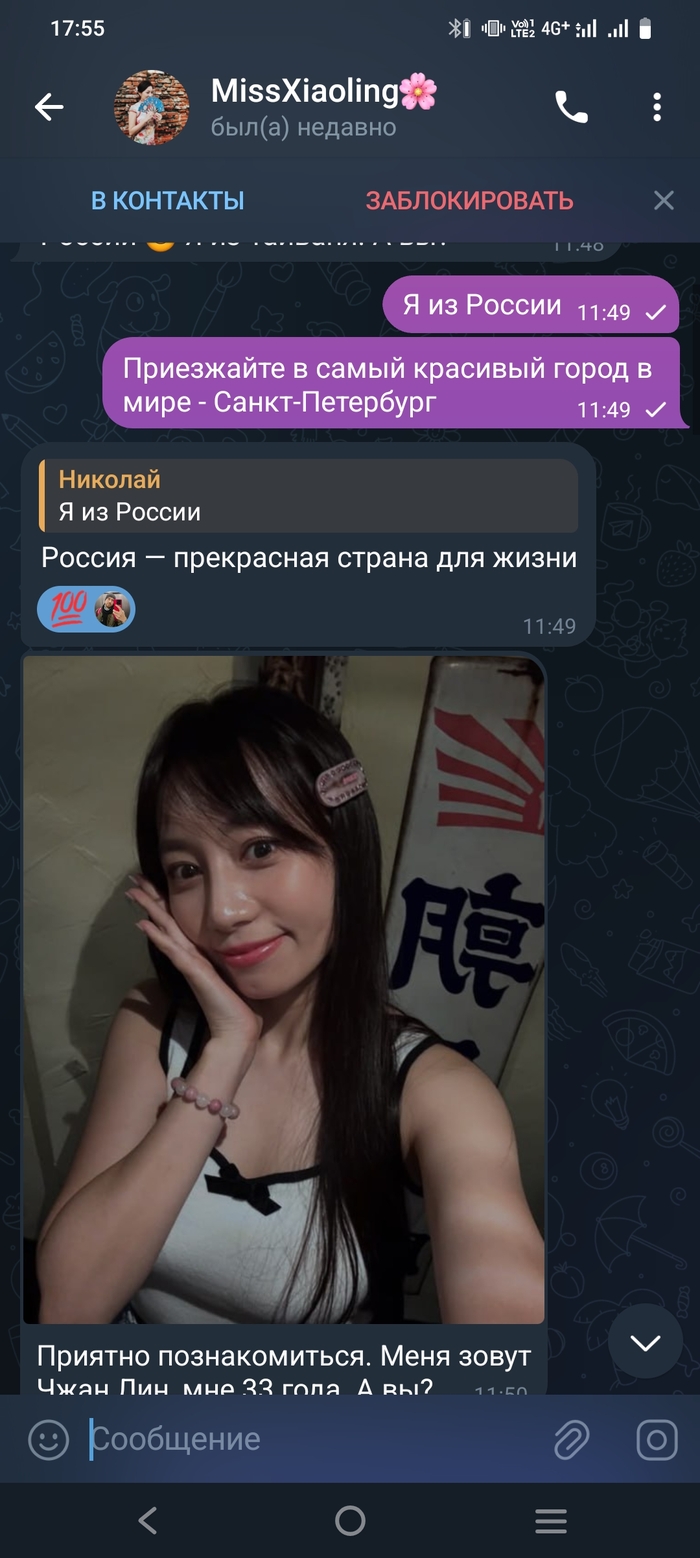 Обсуждают увлечения, заваливают комплиментами. На этом этапе я попросил записать кружок - предложили видео связь. Созвонились, по ту сторону молодая девушка(а может не молодая, кто азиаток поймет). Что-то почирикала на ломанном английском(хотя писала, что шпрехает идеально, по факту мой "зэ кэпитал оф грэйт британ" оказался получше).