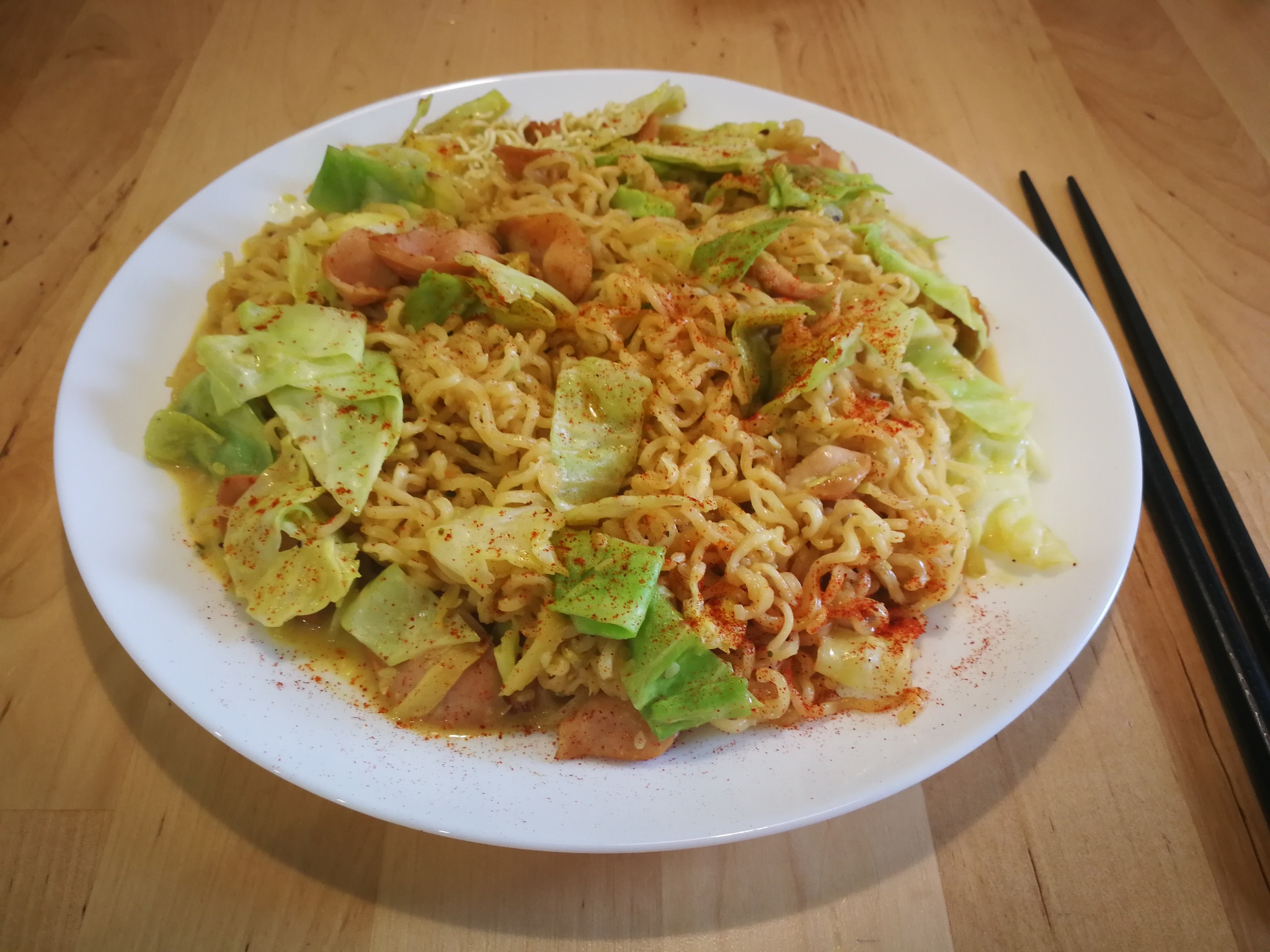 Сегодня у нас лапша ролтон с сосиской!))