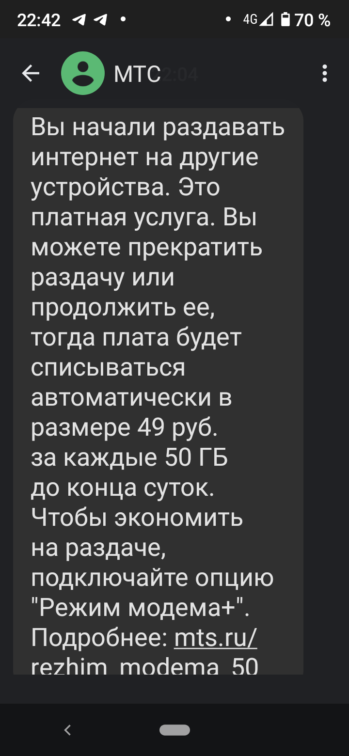 27 Xautor Ответ на пост «Дождались!»1 2 года назад Авотхуй! Час назад попробовал раздать: [моё] МТС Мобильный интернет Сотовая связь Мат Ответ на пост Длиннопост 1 1 Ещё 0