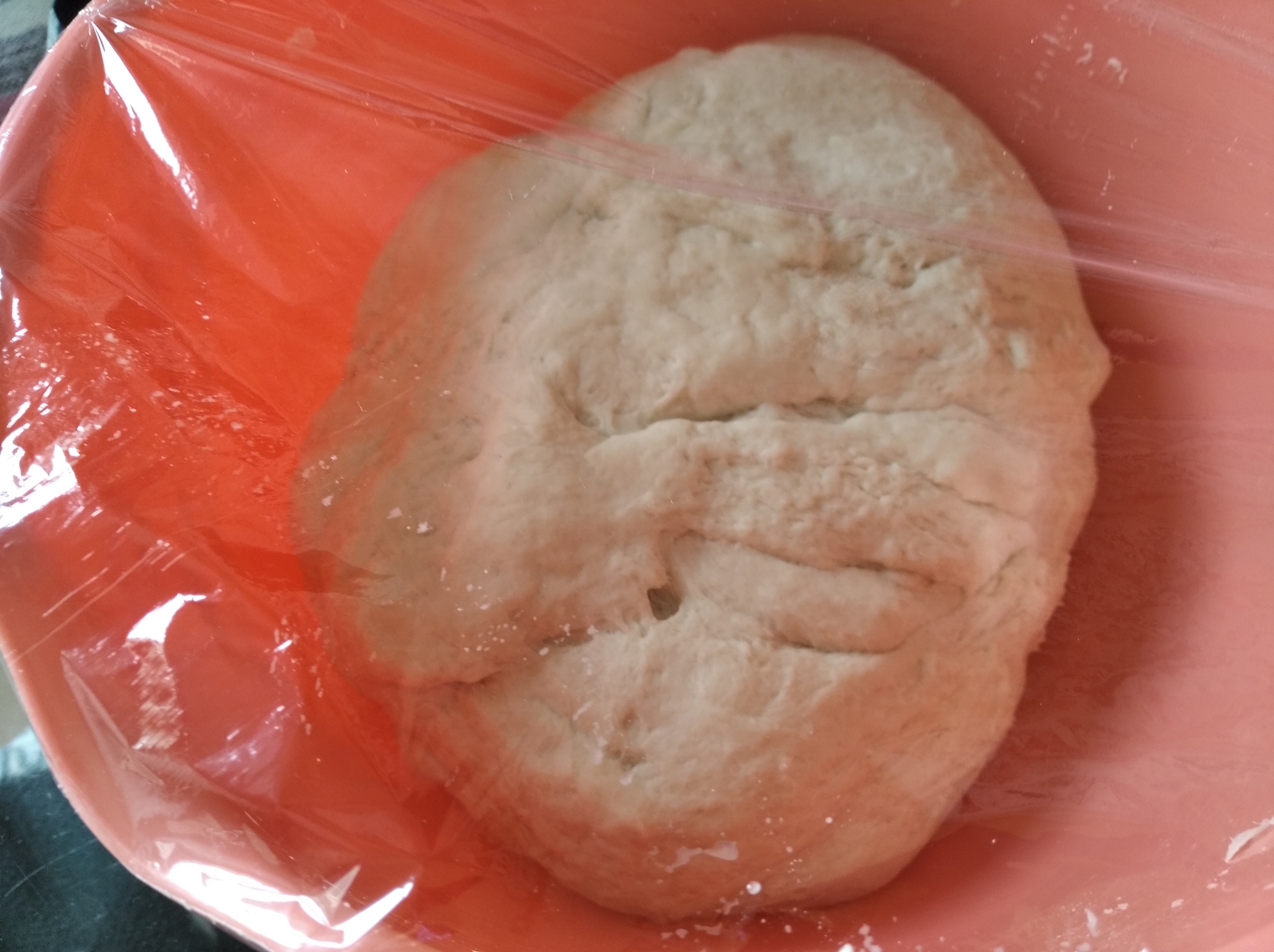 При добавлении 750г муки тесто при вымешивании липнет к рукам, так что лучше добавить до 850-900г, понемногу, пока тесто не перестанет прилипать.