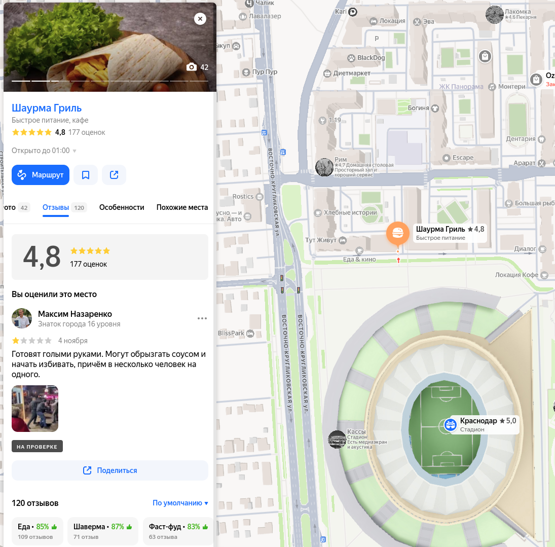 1426 Makc213 1 день назад Ответ на пост «Дружный Краснодар»3 Ок. Отзыв оформил https://yandex.ru/maps/org/130531936513/reviews?reviews[publicId]=u8b7m7b1eynmctm1q96xp1nruw&si=u8b7m7b1eynmctm1q96xp1nruw&utm_source=my_review Уличная еда Шаурма Видео Вертикальное видео Короткие видео Негатив Ответ на пост Длиннопост 96 23 11 9 Ещё 0