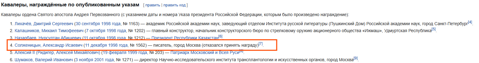 Помимо прочих, Орденом Андрея Первозванного награждены Александр Солженицын (видимо за долгую и плодотворную работу на ЦРУ) и Никита Михалков, видимо за это: https://www.kommersant.ru/doc/8316306