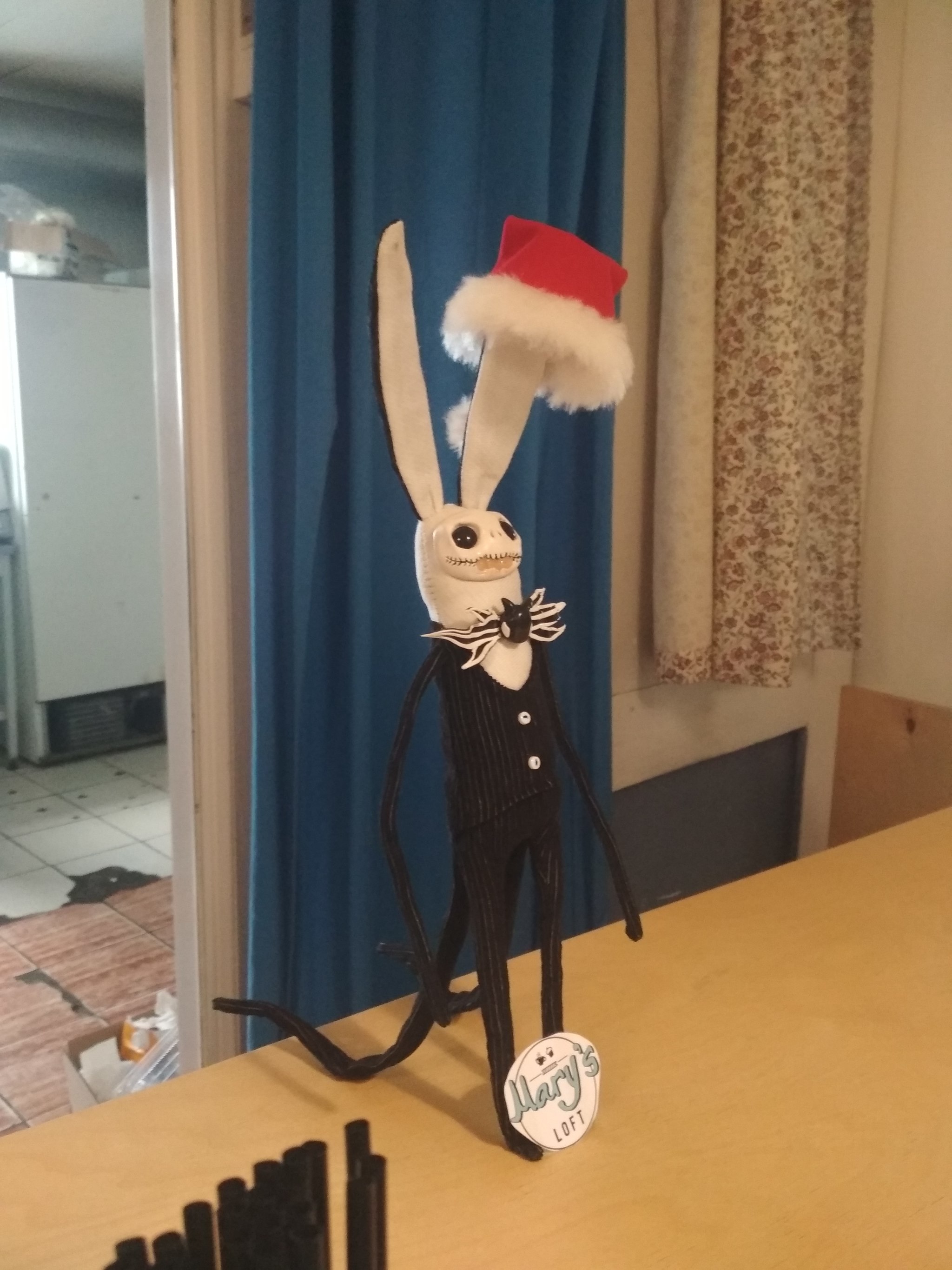 Заказали как-то Джека. Проблема в том, что я делаю зайцев, а он - скелет. Но ничего, вроде симпатичный вышел. Заказчик был рад.