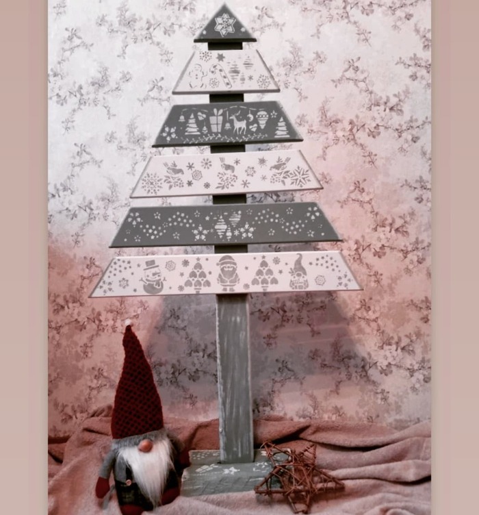 Прошлой зимой на просторах инсты, видела много примеров креативных ёлок. И зачесались мои руки, и чесались почти целый год. И вот, поехав на дачу, из обрезков стройматериала, решила сделать ёлку. В инете нашла чертеж.