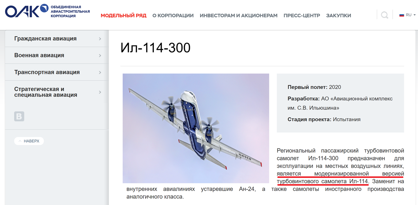 Намёк на родственную связь Ил-114-300 с Ил-114 неожиданно возмутил околоавиационных знатоков, наверно поэтому, чтобы никто не забывал своих корней, на сайте ОАК эти самые родственные связи прямо и указаны: