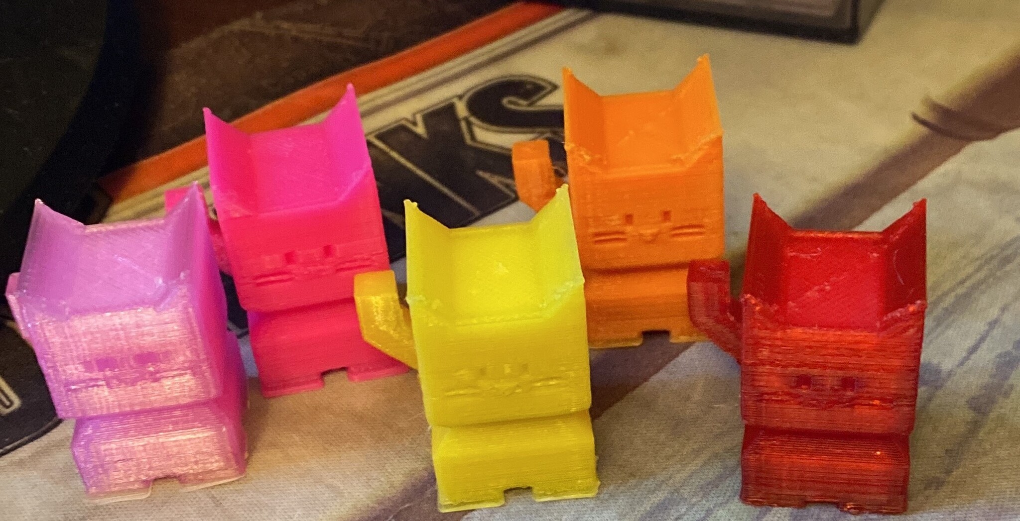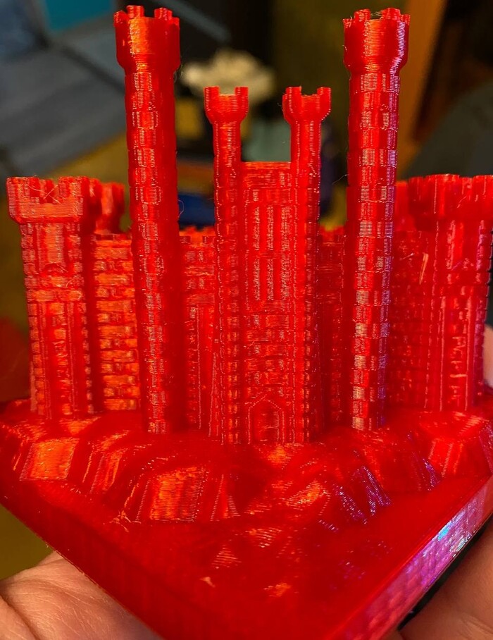 Детализация после первого принтера просто феноменальная, но сразу стало заметно, что скорость печати в разы медленнее, чем на старом принтере. Калибровочный куб печатается около 50 минут против 20. Позже выяснилось, что это ограничение прошивки, которое все-таки можно победить. Прошивка кстати закрытая, исходники саппорт не высылает и вообще всячески выказывает неодобрение по поводу модификаций железа и софта. Обещанный автоуровень работает по какой-то своей логике, что выяснилось в день получения принтера, как это вылечить я до сих пор не знаю, приходится в слайсере поднимать модель над столом при нарезке. Ну и самое главное, адекватно откалибровать всю поверхность стола просто нереально. К этому моменту я уже научился более-менее адекватно задавать вопросы гуглу и понял, что своими силами эту проблему я не вылечу, поэтому печатаю на середине, без претензий на большие площади. Калибровку принтер держит в разы лучше безымянного китайца, но, по-хорошему доработать стол было бы неплохо. За время использования принтер получил тихие драйвера и более тихую систему охлаждения, стало возможно запускать задания длящиеся больше восьми часов. Принтер даже порадовал нас с женой популярной пару лет назад игрушкой.