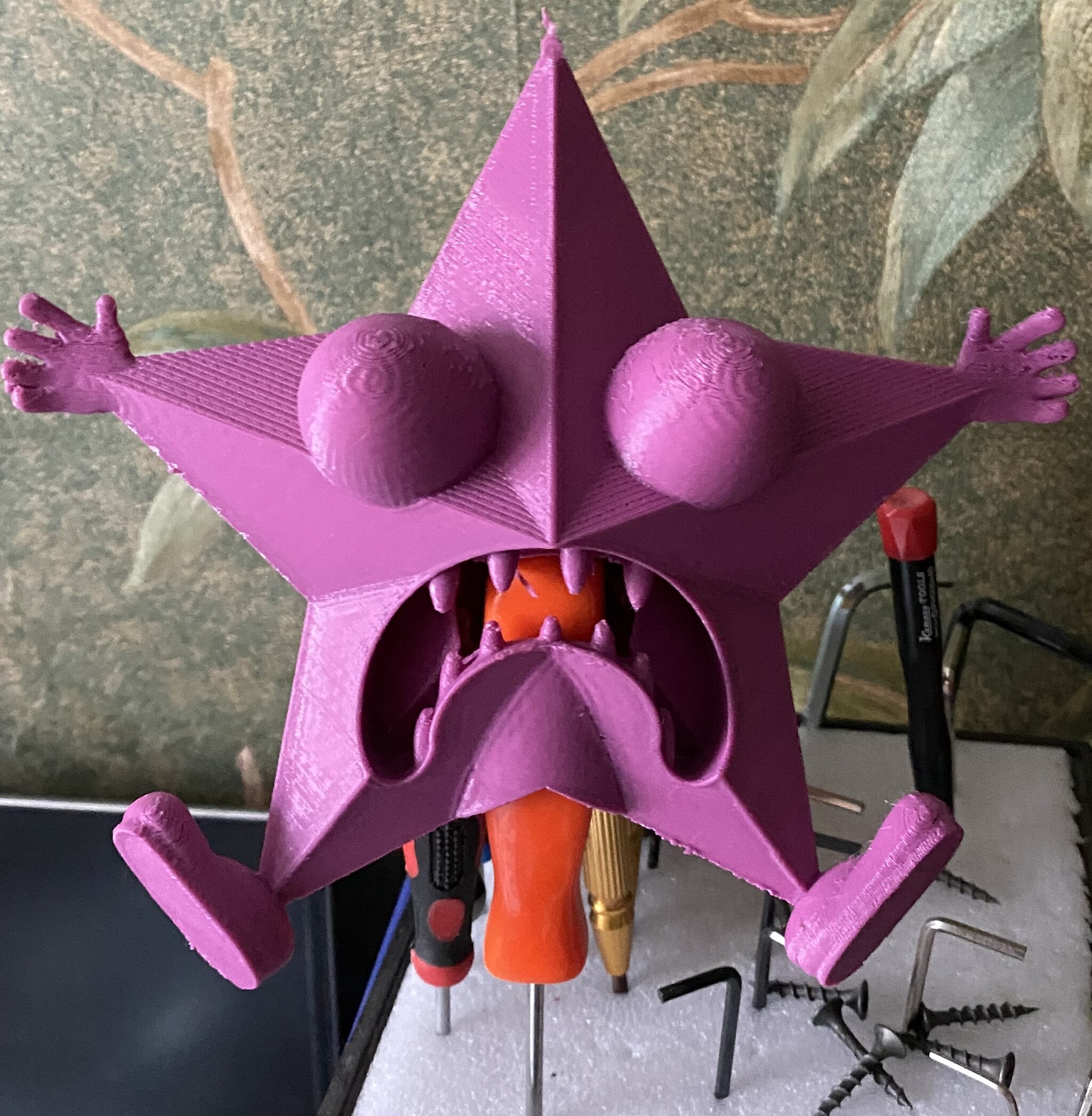 В этом году звезда таки не выдержала боли и рухнула с елки, отколов обе ноги, будем печатать новую, тем более, что навыки уже позволяют печатать чуть более адекватно, да и покрасить ее в итоге получилось весьма терпимо. За время пользования принтером я научился более-менее расставлять поддержки, развернул octopi для печати по сети, более менее определился с пластиком, который мне подходит. Пришло время потихоньку осваивать какую-нибудь cad систему. Стало ясно, что для комнатного принтера хирон очень большой и крайне неудобный в обслуживании. В планах сослать его на балкон до лучших времен, а на стол поселить что-нибудь небольшое и шустрое. Но на этот раз мне должно хватить мозгов, чтобы сначала прошерстить форумы и выбрать модель, по которой хотя бы информацию не нужно собирать по крупицам. Пикабушники, поделитесь, кто на чем печатает и с какими результатами? Ну а если есть хироноводы, то тоже с удовольствием обменяюсь опытом.