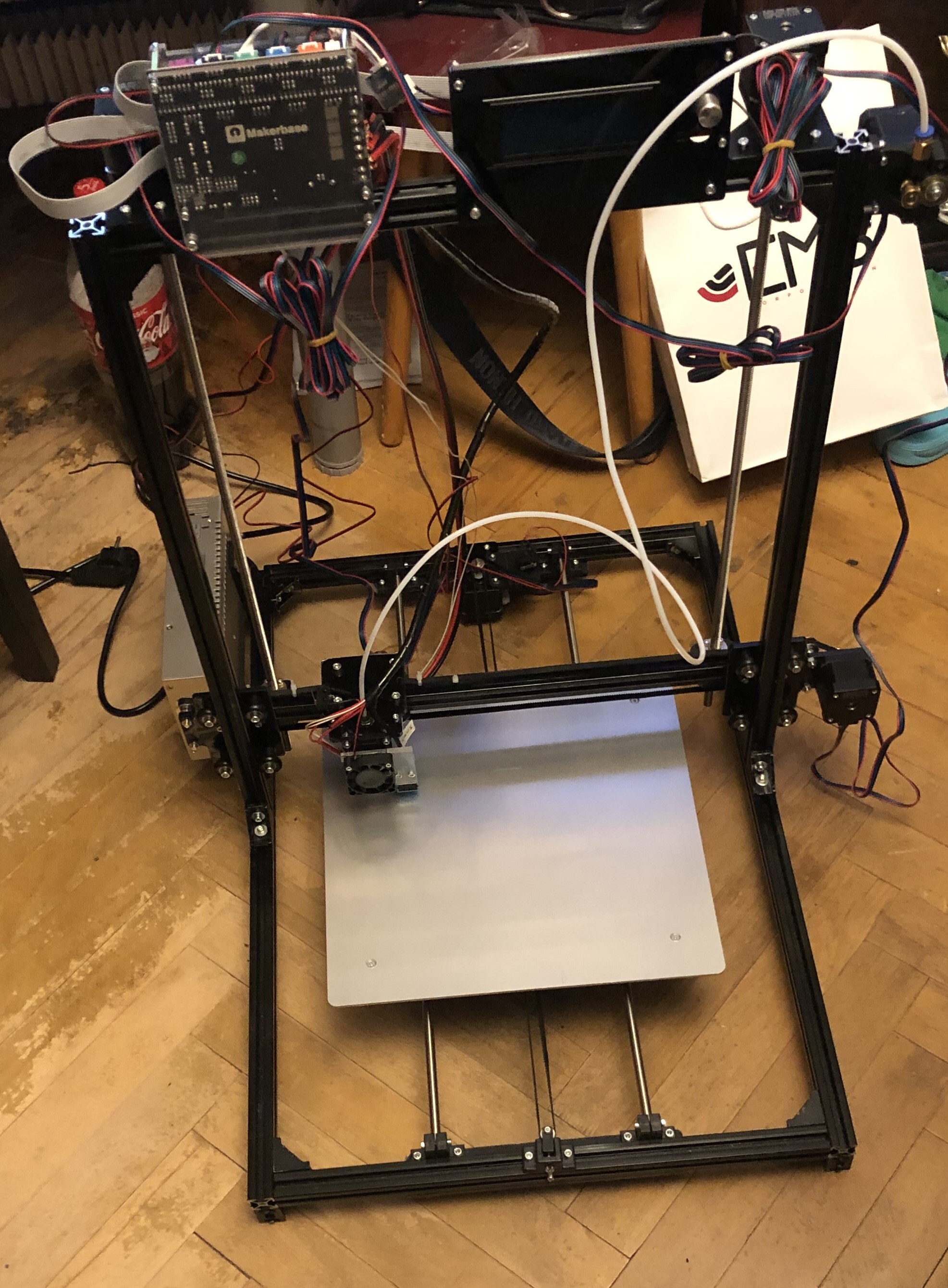 Примерно такая же история и у меня, только грустная (я еще в процессе познания). Началось все в конце 2019 года, когда со склада недоставленных посылок удалось за копейки урвать нечто, что в прайсе значилось как "3д принтер". На тот момент о 3д печати я знал только со слов коллеги, отпечатки тоже видел в его исполнении, выглядело красиво, почему бы не попробовать? Этим самым принтером оказался ноунейм клон Flsun I3. После пары вечеров неторопливой сборки вышло вот такое чудище.