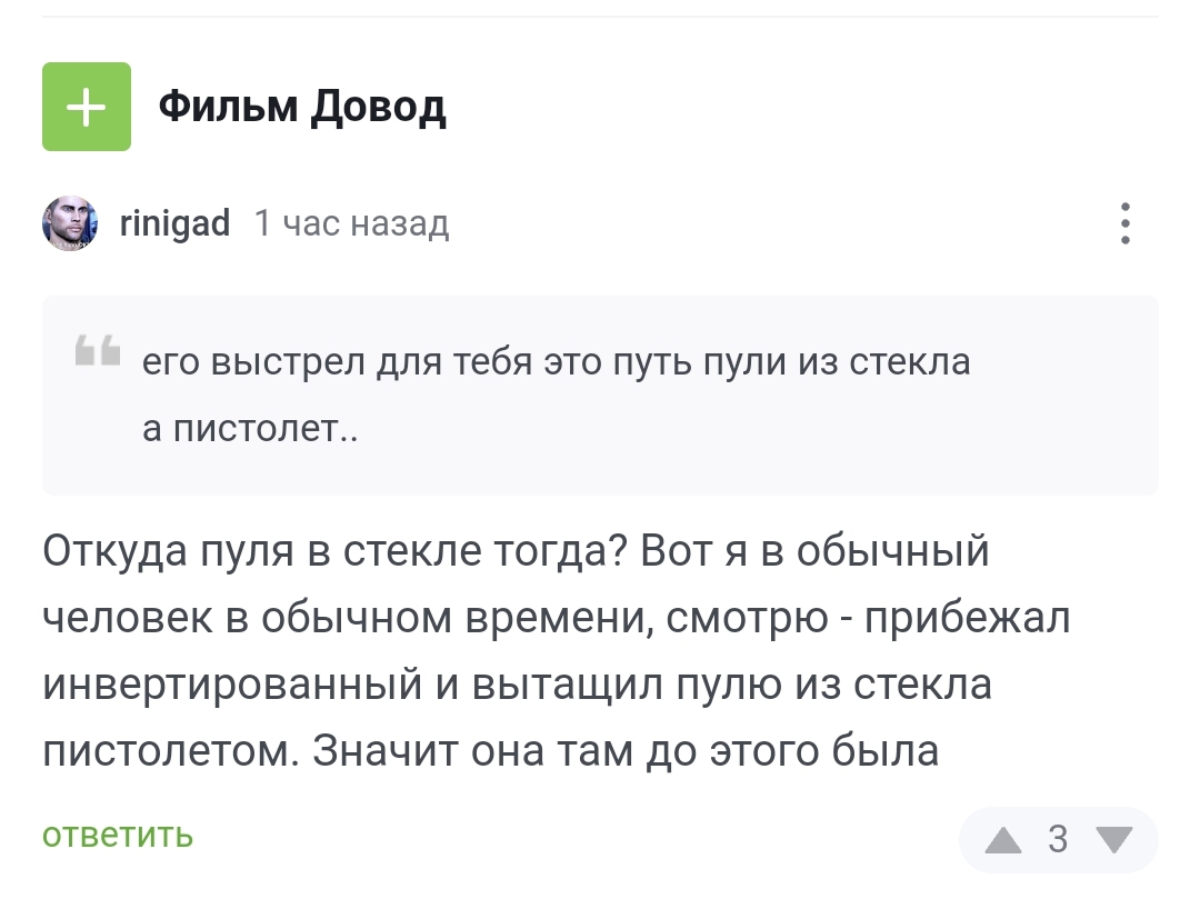 Фильм это движение героев одновременно в обычном направлении времени и обратном, и всё это происходит "сейчас".