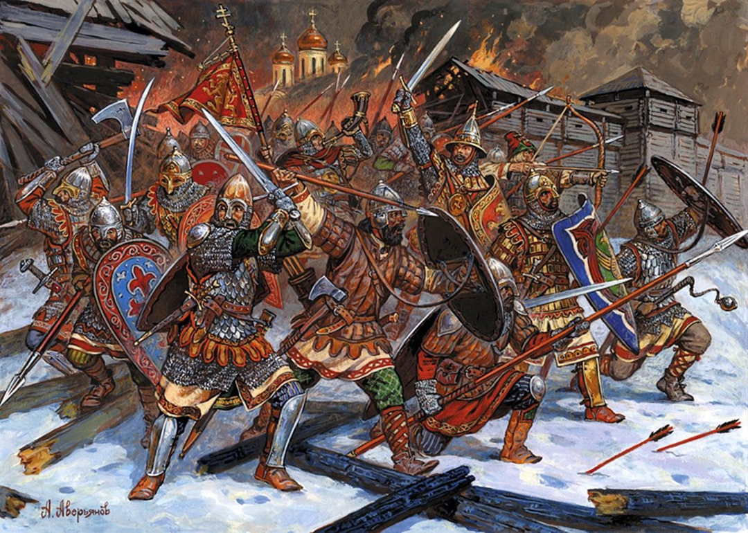 Но Рязань берут буквально сходу — подошли, развернули осадный парк, и за пять дней взяли приступом. Вопрос «А как же монголы таскали с собой свои камнеметы» имеет очевидный ответ — они их и не таскали. Материалы для сборки осадных орудий были буквально кругом в неограниченном количестве. Деревянные стены давали скверную защиту от осадной техники. К тому же, монголы познакомили русских с передовым методом штурма, который назывался «хашар». Это когда заваливать ров и лезть на валы посылают набранных по деревням крестьян, а оккупанты их подбадривают копьями в спину.