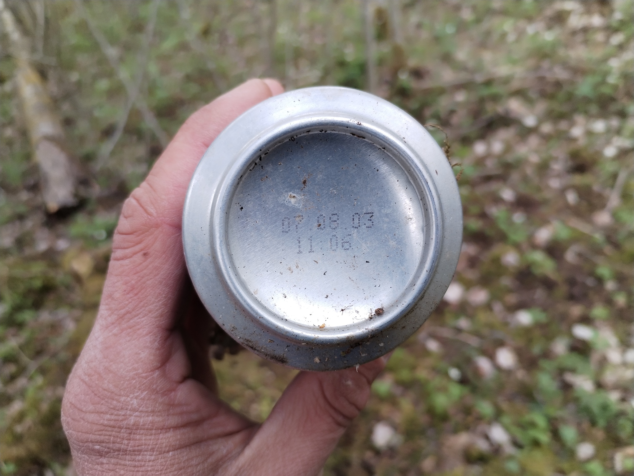 Вот буквально 10 минут назад нашёл в лесу банку, судя по дате, ей почти 20 лет.