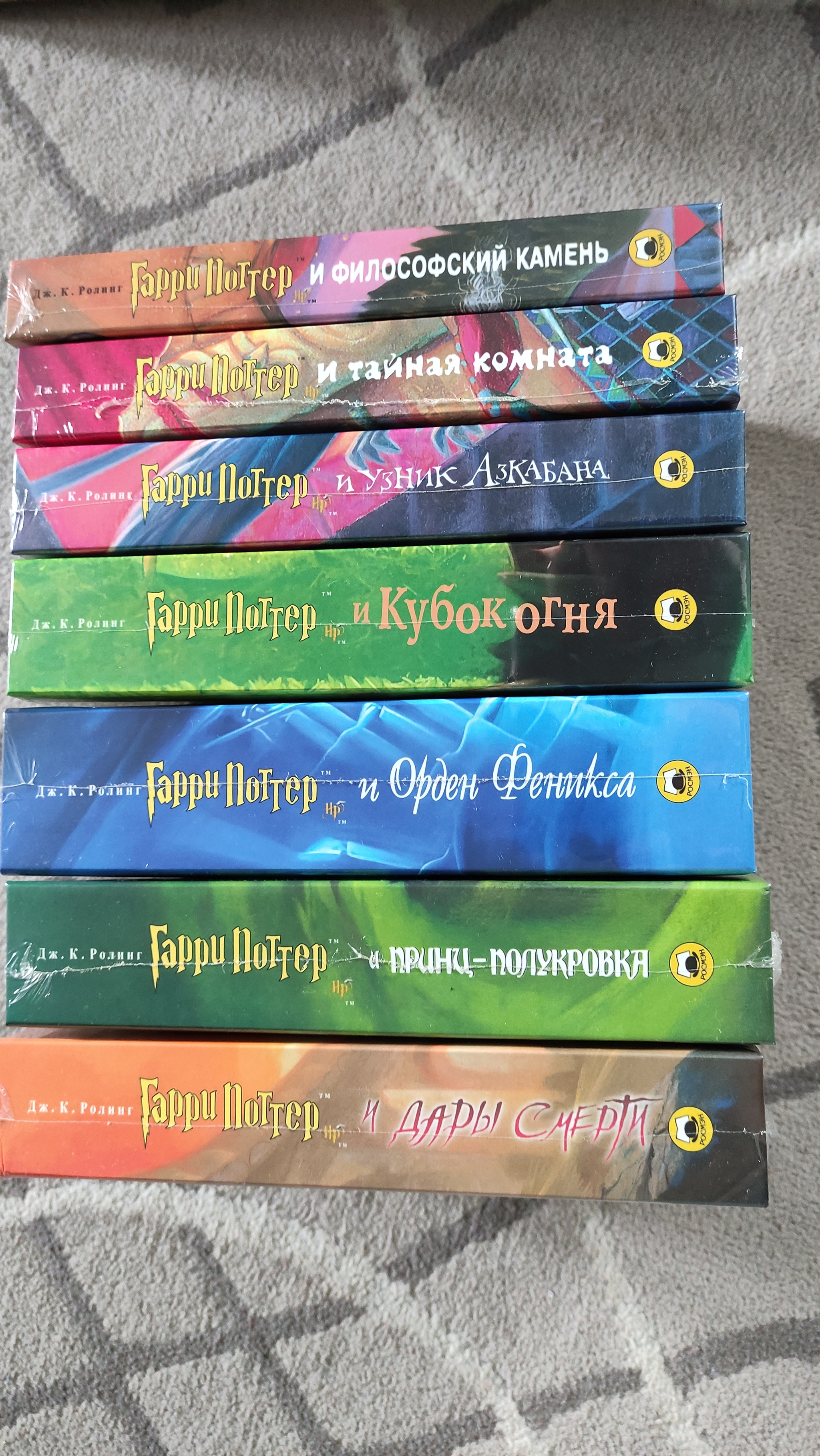 Все детство о них мечтала! Со второго класса,как одноклассник принес и дал почитать "философский камень" меня потеряли родные. Я фанатела по вселенной Поттера как безумная,читала все что было в библиотеке и удавалось выпросить у знакомых. Будучи постарше читала первые три в оригинале. Купить книжки родители не могли, у меня ещё два брательника есть и на книги просто не было денег. А когда выросла-вышла замуж и детей нарожала) Так что тоже не до этого было.Но на 31 день рождения супруг исполнил мою детскую мечту. В каноничном переводе,на белоснежной бумаге,аааа,это был экстаз. Тащила эту тяжеленную коробку с озона сама и дома, с замиранием сердца, распаковывала каждую книжечку от слюды). Перечитала за неделю и счастливая передала эстафету сыну. Сейчас на Ордене феникса уже,читает с удовольствием,что в наше время редкость.