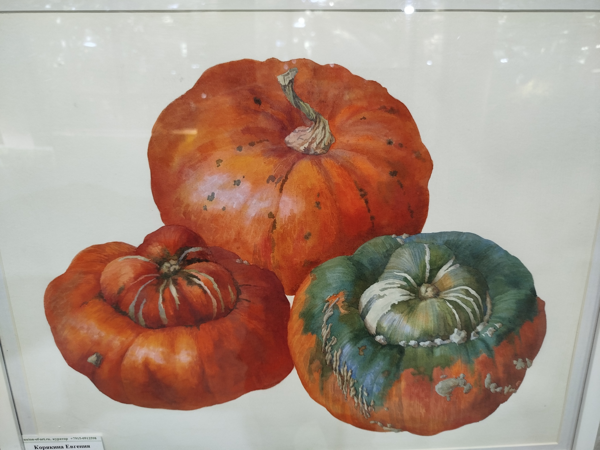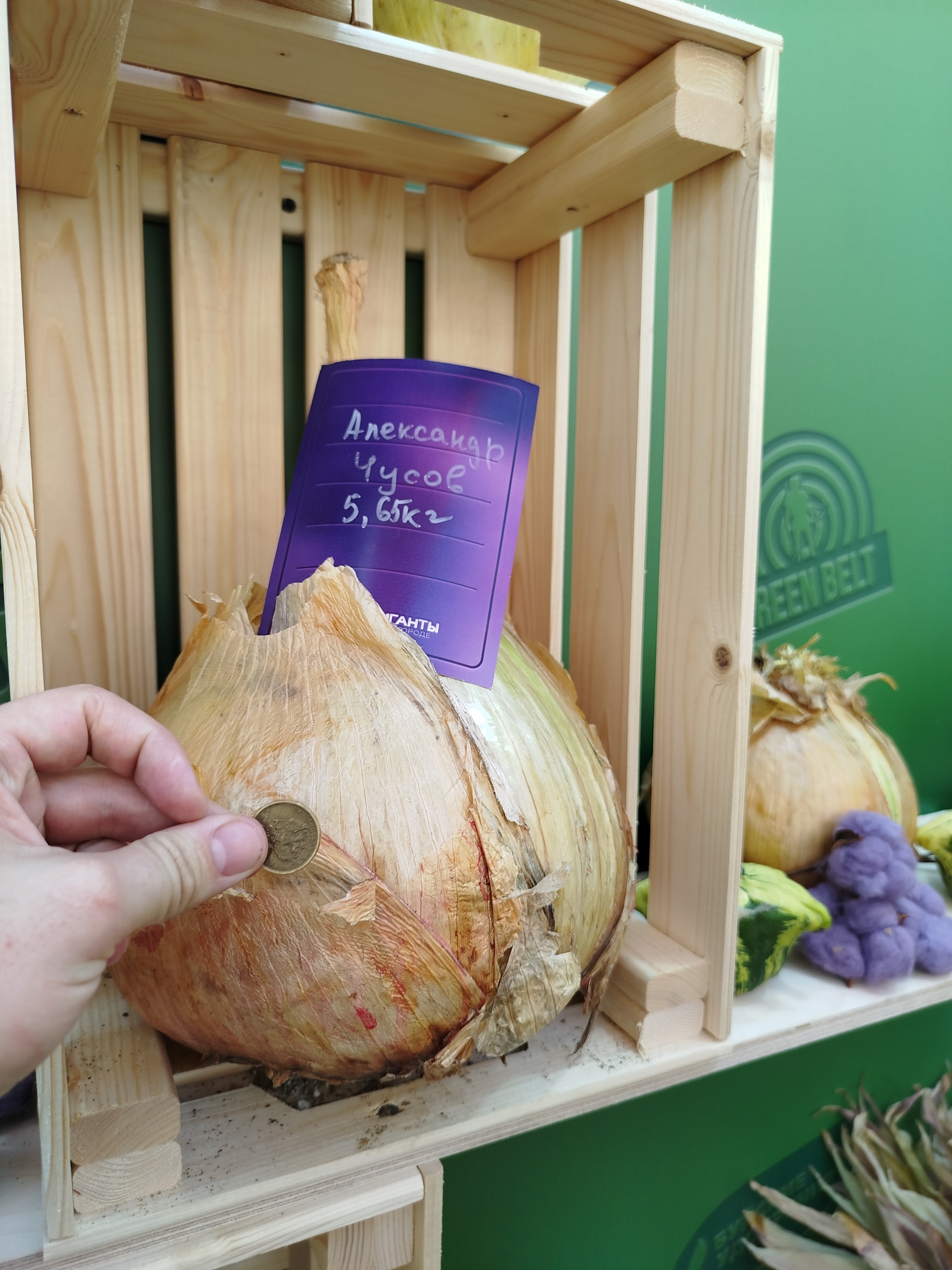 Людей много, экспонаты плохо видно, но понять, где заветные плоды можно по скоплению людей. Народ бурно обсуждает, кто-то сетует на несъедобность, так как " одни удобрения", кто-то определил в Вульфе половую принадлежность и обвинил в эксгибиционизме. Чувствуется восторг счастливых зрителей.