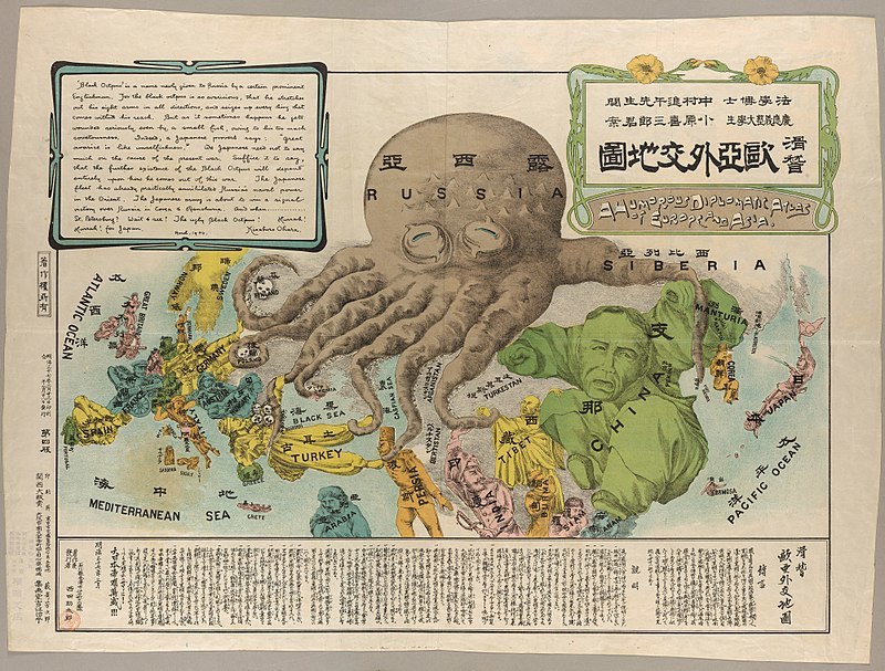 Антироссийская сатирическая карта, подготовленная японским учеником Университета Кэйо во время русско-японской войны.
