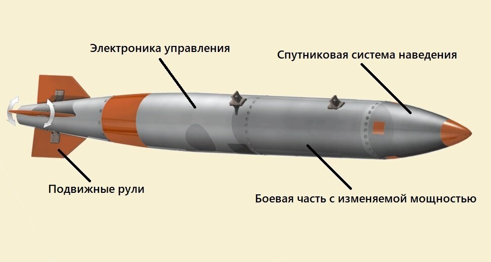 Бомба массой 500кг имеет длину свыше 3,5 м, и диаметр около 30 см. В отличие от предшественника, она оснащена четырьмя аэродинамическими рулями, которые позволяют менять траекторию падения. Рули вкупе со спутниковой системой наведения обеспечили высокую точность попадания — до 10 м (в прошлых модификациях она достигала 200 м).