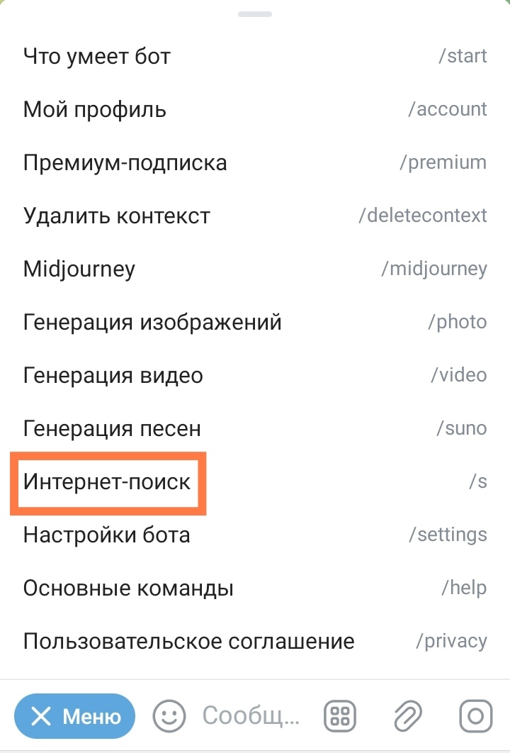 Выбрать режим глубокого исследования по интернету (Deep Research) можно в меню (тоже бесплатно):