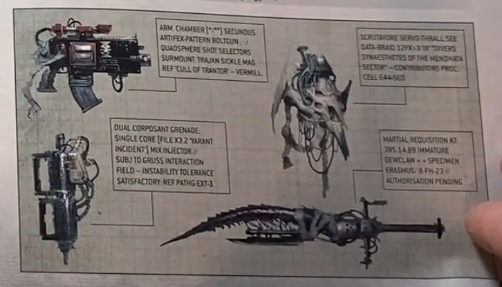 Тут еще есть варианты вооружения . Особливо привлекают глаз тиранидомечь и сервочереп из черепа некого ксеноса. В комментах требуется перевод с ангельского