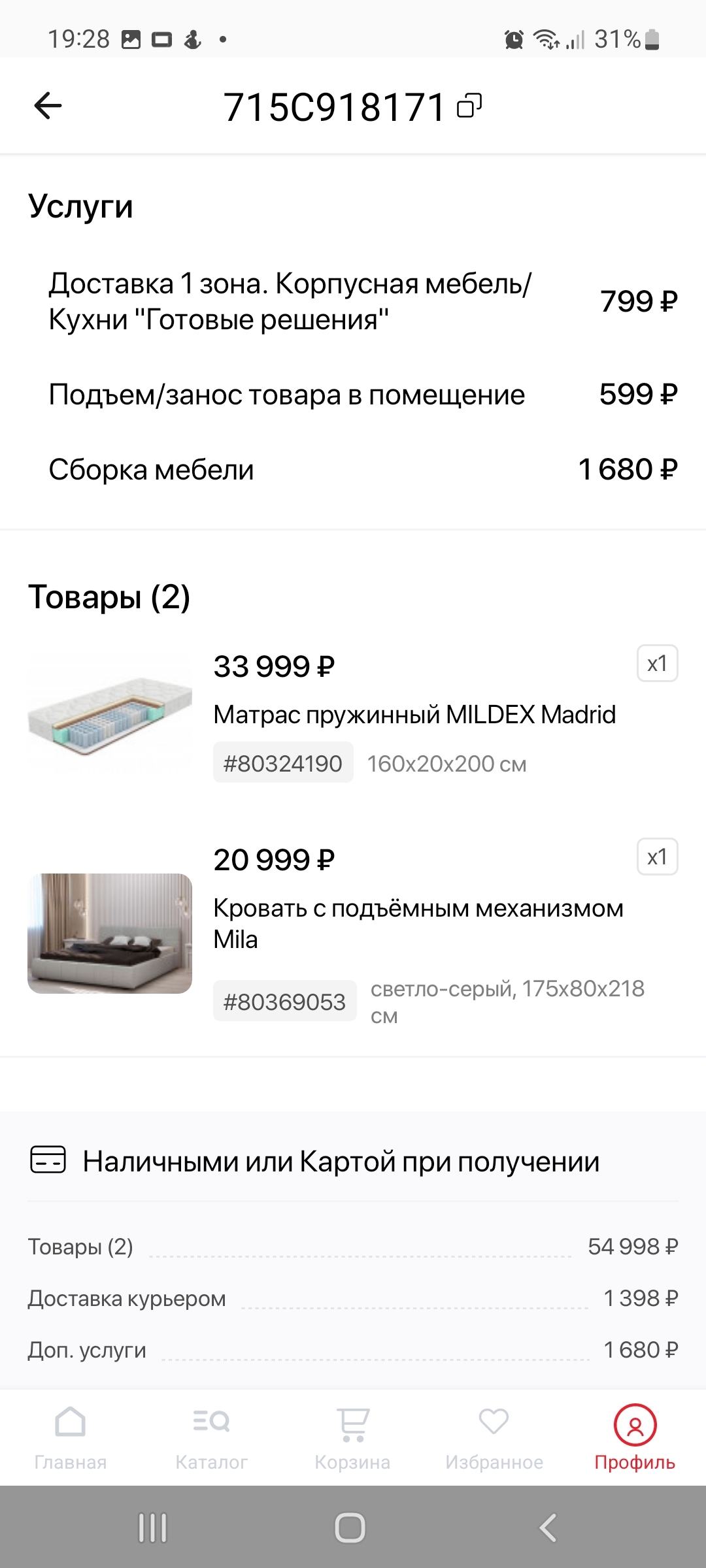 До кровати заказывали шкаф, его ждали месяц. Но дождались. Тоже занесли, все собрали. Без проблем.