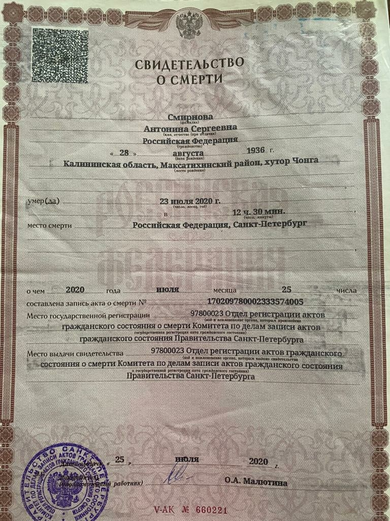 Обратите внимание в свидетельстве о смерти на подпись руководителя Ситникой Юлии Николаевны. Человеку 65 лет (родилась 1 июля 1960г) и раньше действительно работала заместителем начальника ЗАГСа Белорецка. ЭТА ЖЕНЩИНА ДОЛЖНА БЫЛА УЙТИ НА ПЕНСИЮ В 2022 ГОДУ. Госслужащим нельзя после 65 лет работать. Могли продлить до 2025 и то врядли. ТЕ максимум она могла работать до 1 июля 2025г.Данные госслужащих находятся в открытом доступе, если что! У нее есть странички в вк и одноклассниках, легко ее можно найти и ее дату рождения тоже. В настоящий момент начальник ЗАГСа - Хлынова Инна Сергеевна.