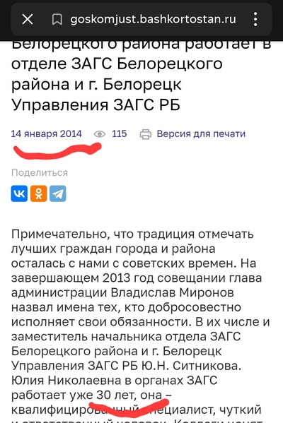 КТО НЕ ВЕРИТ - может позвонить как и я в ЗАГС Белорецка по номеру телефона +73479225556, и позвать Юлию Николаевну к телефону! Мне сегодня сказали, что она там ДАВНО не работает, тк ушла на пенсию! Что логично)))