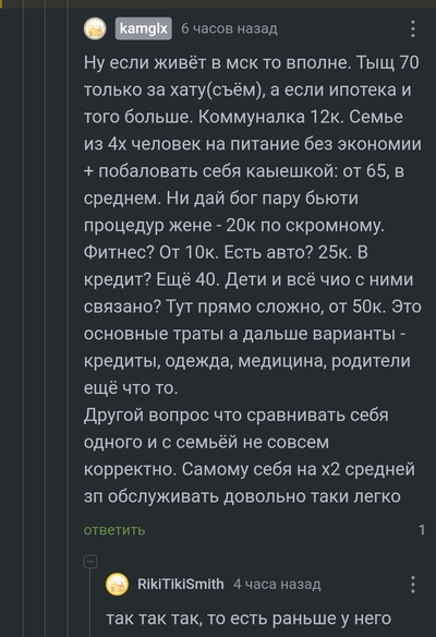 А потом почесал репу и прикинул так - ну вот серьёзно же, я брал на рынке лососёвые стейки по 160 руб/кг, а сейчас те же стейки дешевле 1000 не найдёшь и вот именно так это и выглядит. Чтобы иметь уровень жизни 2007 года, я сейчас должен зарабатывать, как состоявшийся специалист - где-то 350-450 тысяч. Мы все знатно так стали беднее.