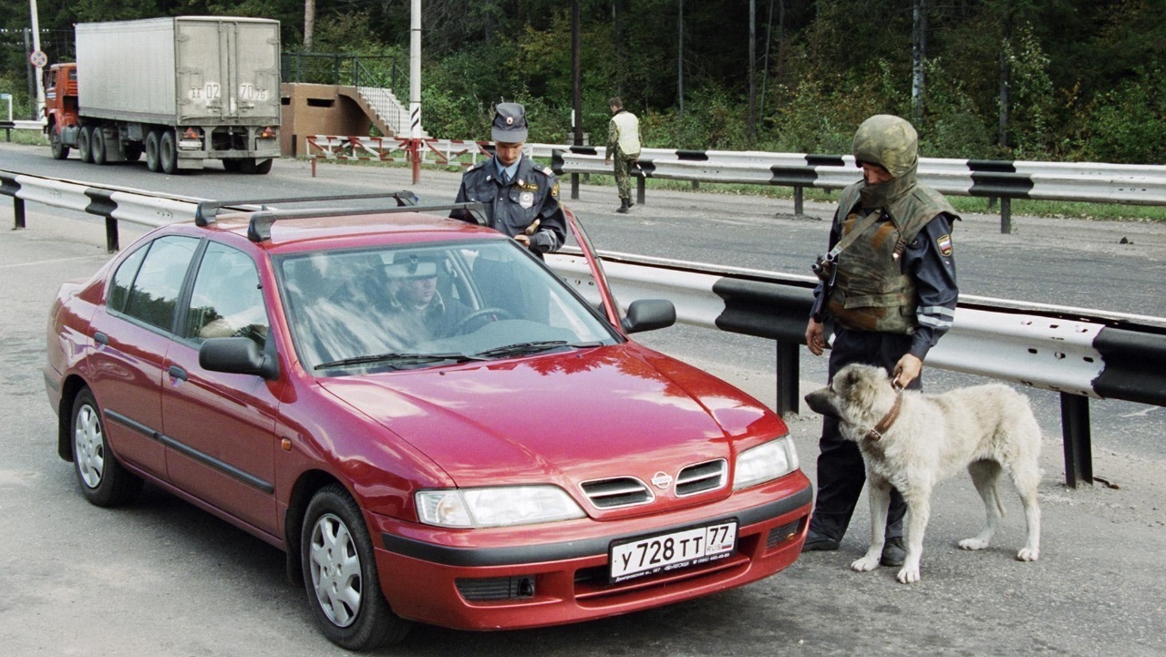 Напоминаю, что Чеченская война была в самом разгаре, и на фото скорее всего проверка машины на наличие взрывчатых веществ. Или собака натаскана на бензин и колбасу по мнению автора?