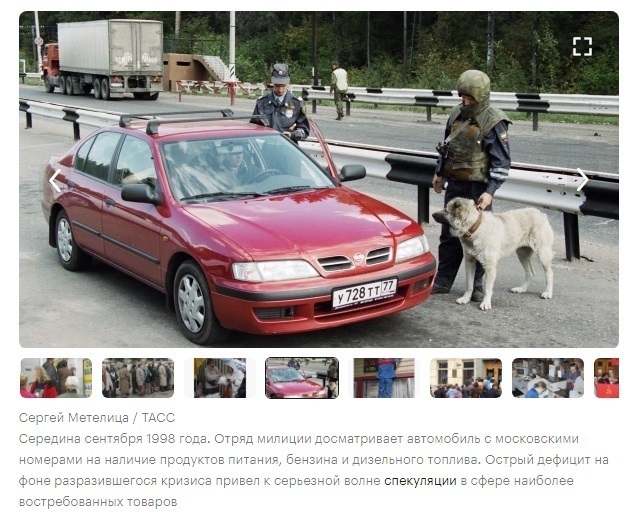 Напоминаю, что Чеченская война была в самом разгаре, и на фото скорее всего проверка машины на наличие взрывчатых веществ. Или собака натаскана на бензин и колбасу по мнению автора?