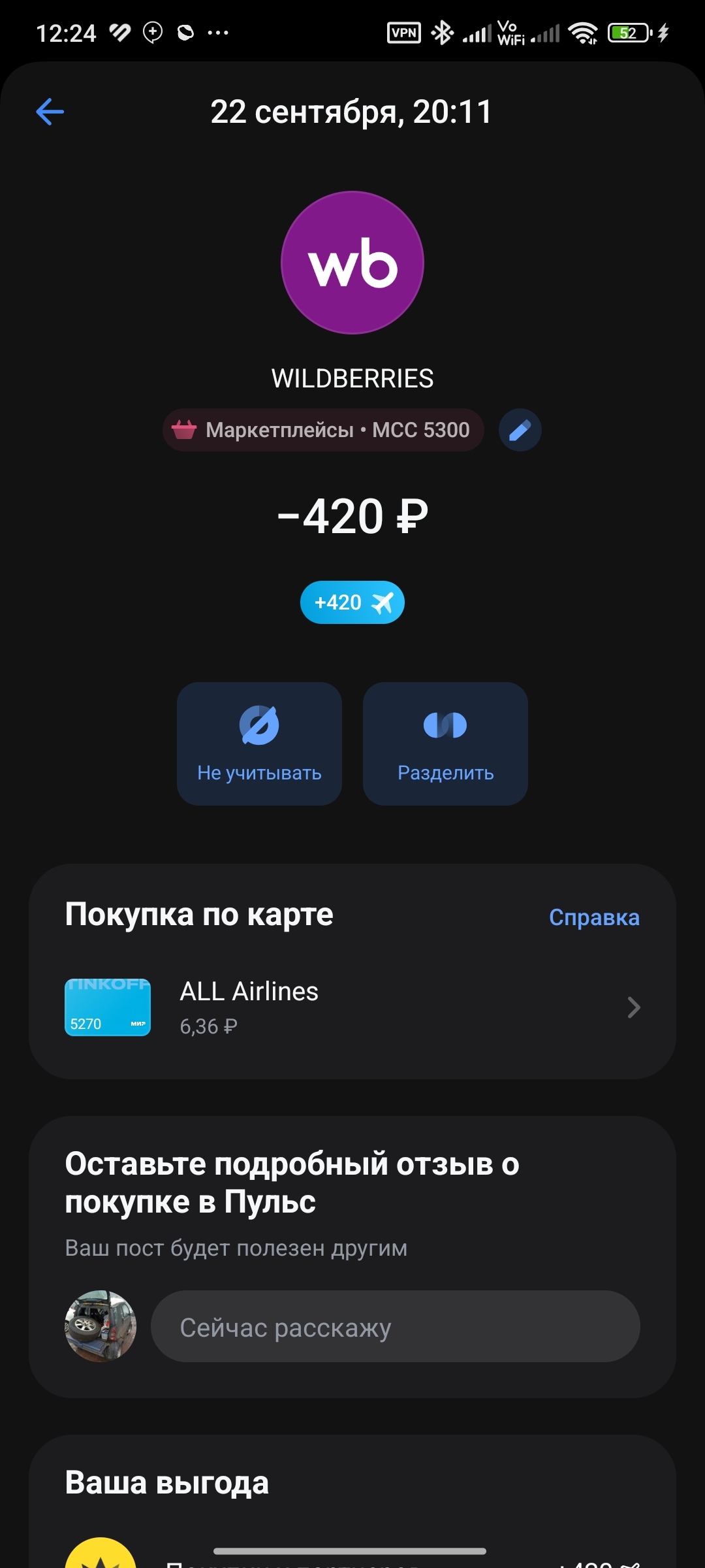Мне все же больше нравится покупки с т банком с кэшбэком 100% да, в данном случае кэшбэк милями. да, можно было и с дебетовой карты там были бы живые рубли. Но мне надо оборот по кредитке делать