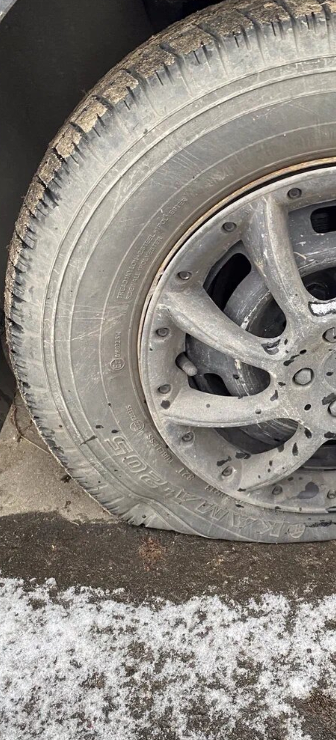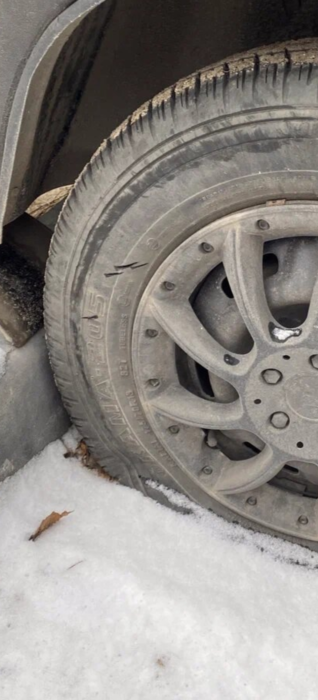 Минут через 15 приезжает полиция, осматривает шины и спрашивают: " У вас врагов нет? Тут в каждом колесе по 4-6 ударов ножом с лезвием шириной 3,5 см, это прям от ненависти бил человек".
