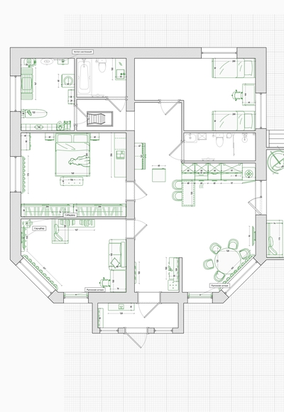 тут можно детскую и взрослые спальни махнуть местами и перенести вход в правый санузел из взрослой спальни, тогда да, имеет право на жизнь...