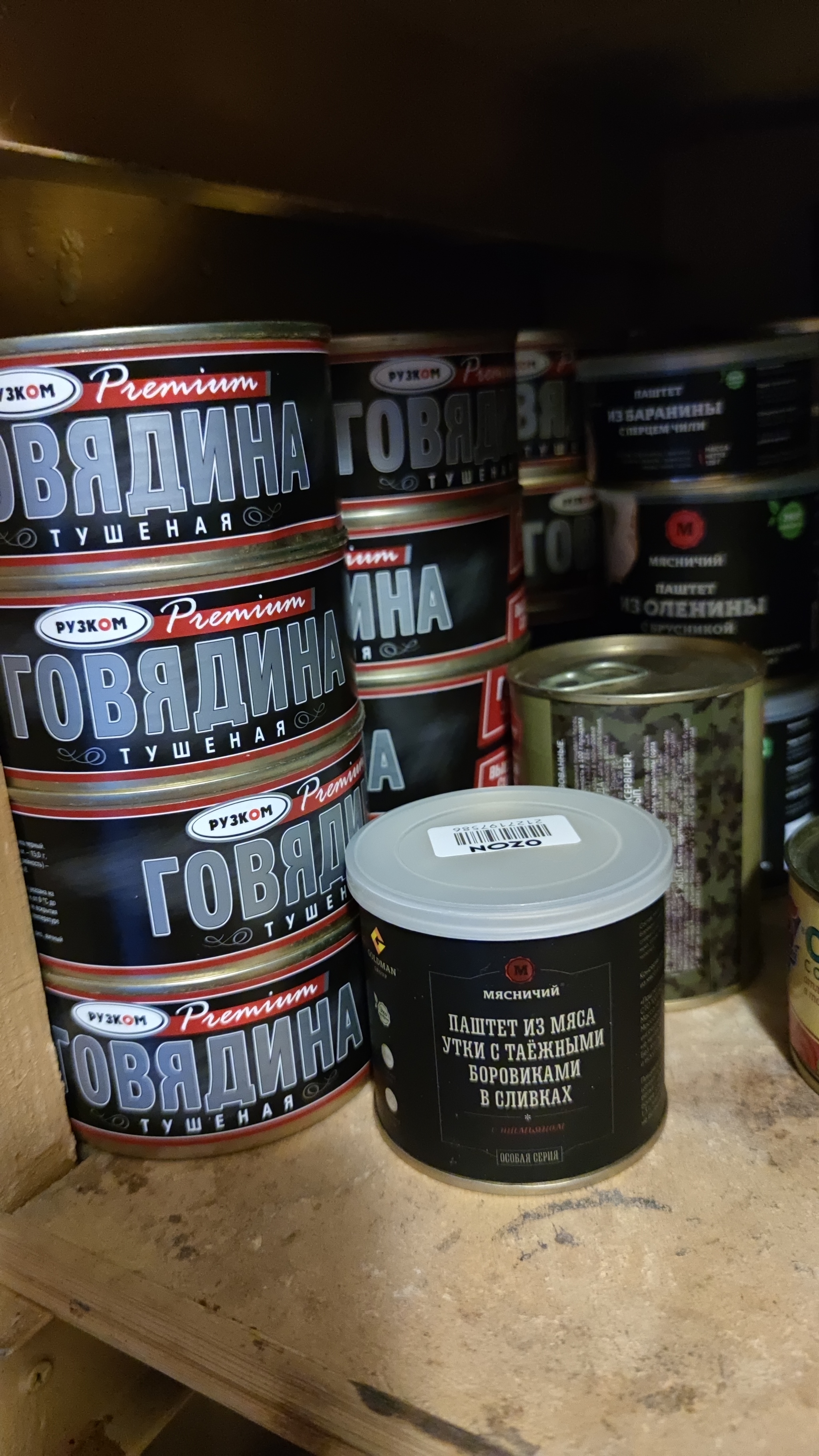 15 банок, всё как заказывали - 12 с говядиной, 3 с кониной (конину еще не пробовали).