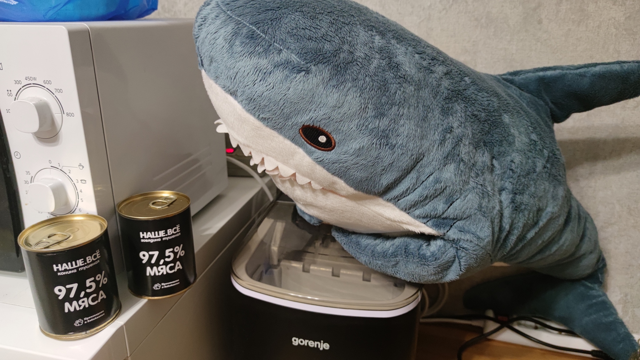 Надпись 97,5% мяса - это закладка, то есть "мясо+жир", мы об этом знали, так как внимательно читали исходный пост. Банки с чекой - очень люблю их, часто лень искать открывалку или её вообще может не быть.