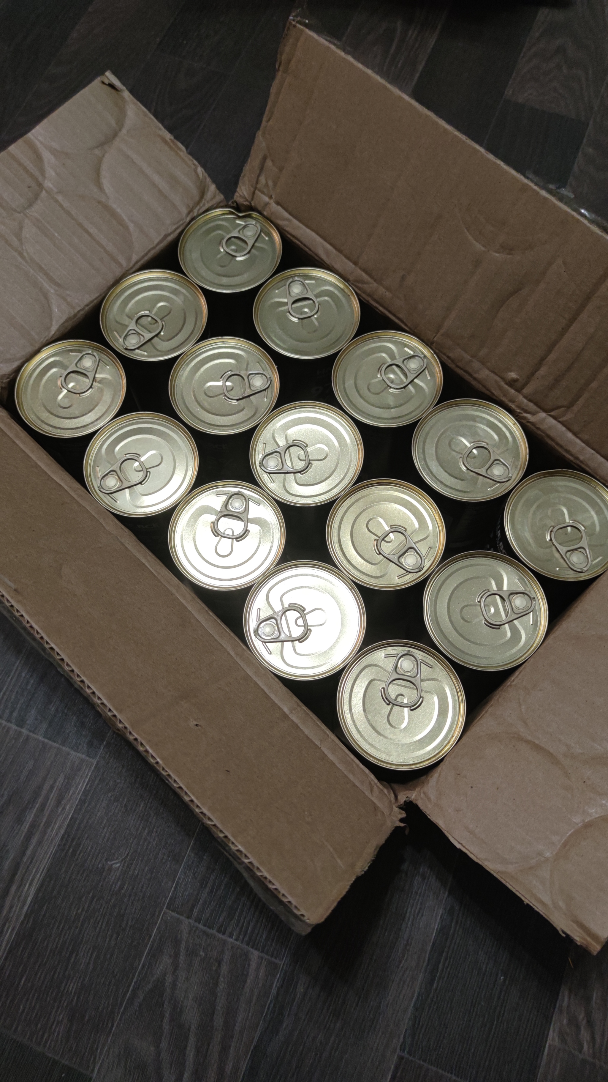 Утром написала в тг и заказала коробку в составе: 12 банок говяжьей + 3 банки конины, с заделом на то, чтобы раздать друзьям на пробу.