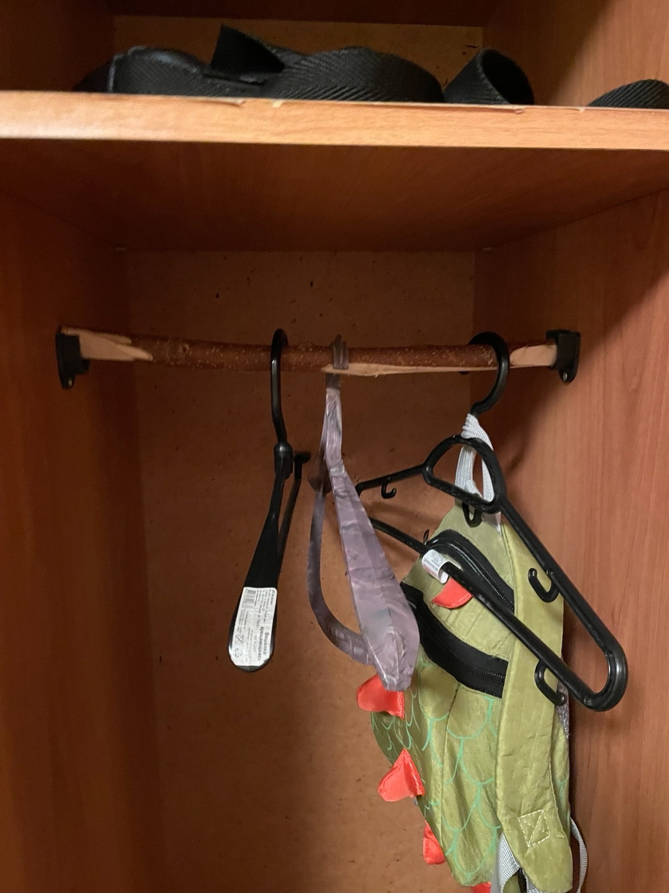 Мало того, что сам шкаф шириной сантиметров в 30 и с одной полкой сверху (а мы же на юга все ездим в платьях и костюмах на вешалах), так еще и эта ветка стала просто вишенкой на этом обосранном торте))