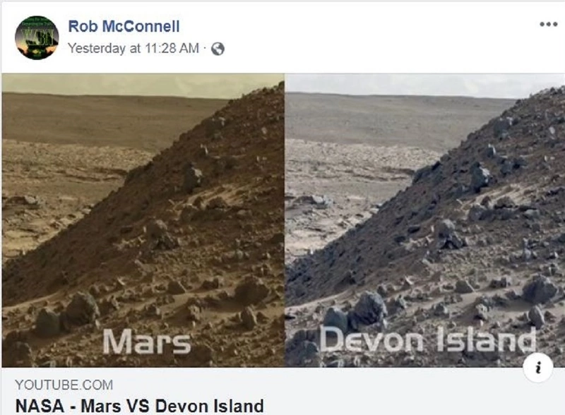 Этот пост был опубликован в феврале 2021 года, через пару дней после посадки марсохода Perseverance. Единственный, кто выдавал этот снимок за фото Марса — автор публикации на Фейсбуке (не помню, запрещенный ли он у нас. На всякий случай отмечу запрещенным).