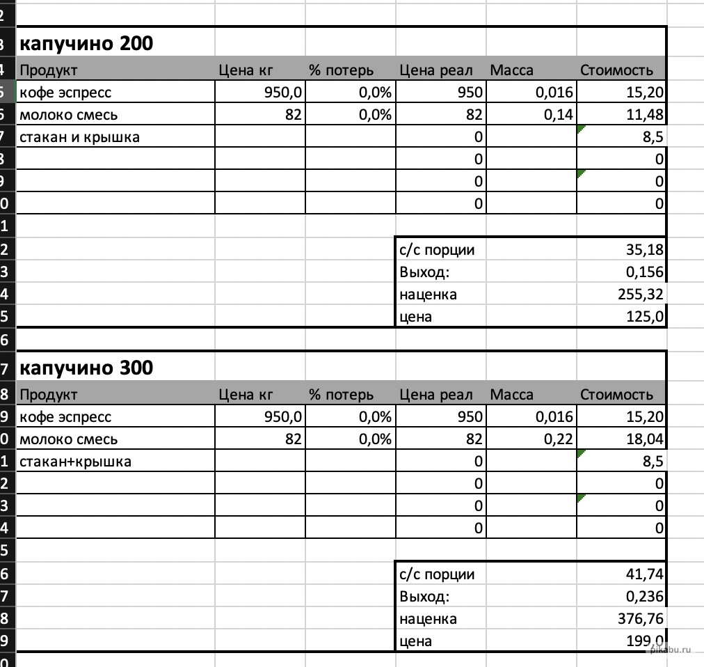 Сотни строк... Зачем? В общепите давно существуют ERP системы, которы все это считают за тебя. Куча убитого времени и еще столько ТС потратит заполняя ее каждый месяц. Все это время можно потратить на развитие свой точки.